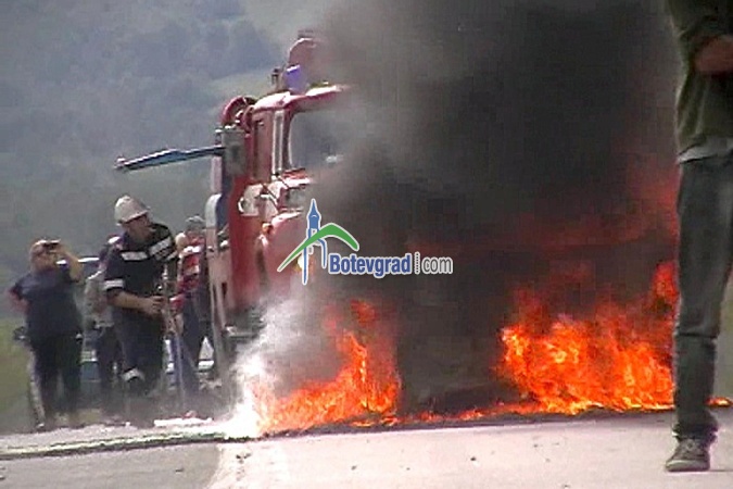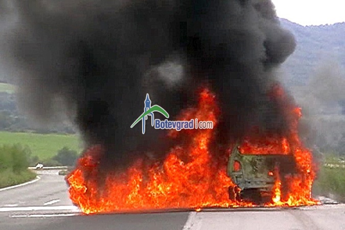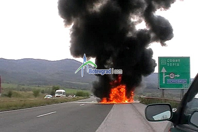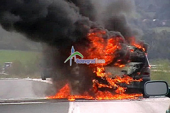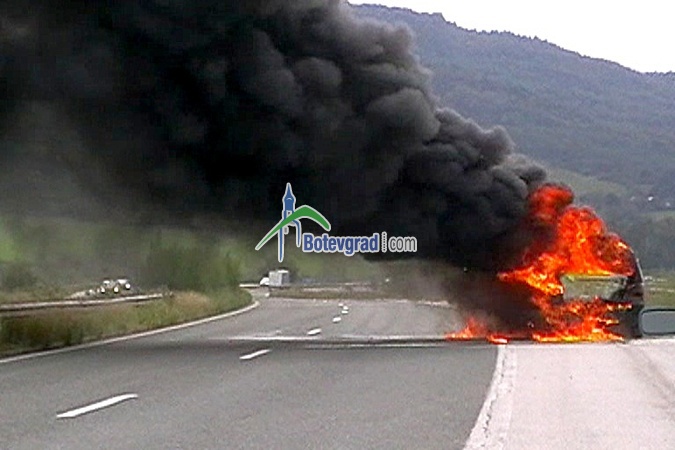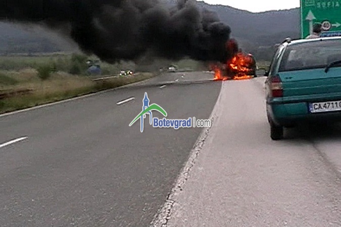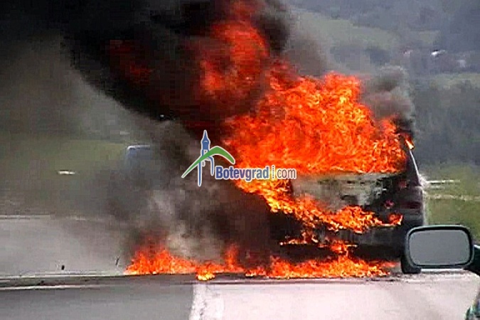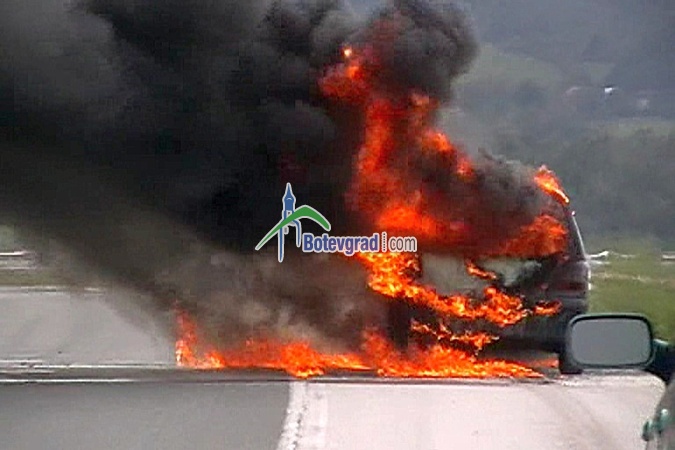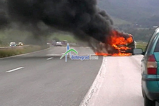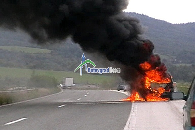Лек автомобил „Рено Меган” се запали по време на движение на АМ „Хемус” в района на Осиковица, предаде наш репортер. Инцидентът стана около 15 часа в посока София. Шофьорът на реното – около 55 –годишен лекар, успял да спре и заедно със съпругата му да напуснат колата, преди пламъците да я обхванат цялата. Тъкмо слезли, от силната температура започнали да хвърчат метални отломки. Една от тях ударила шофьора в областта на рамото. Няколко коли спрели, за да окажат помощ. Обадили се на тел.112. "Линейката дойде след около 20 минути, а пострадалият бе целят в кръв", предаде нашият репортер. Докато пожарната пристигне, колата изгоряла напълно.