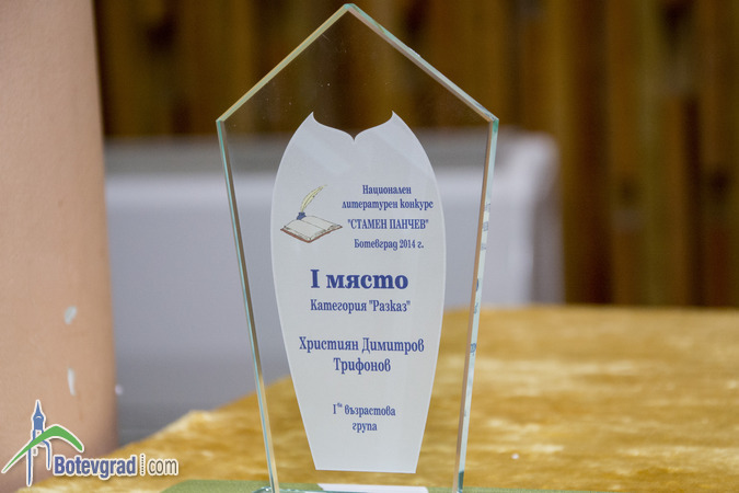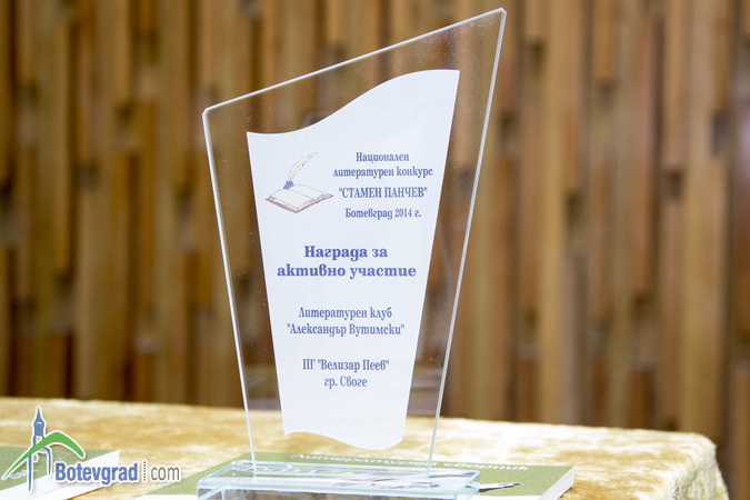Тази година Дружество на литературните творци „Стамен Панчев” обяви награда за местен автор. Тя е поделена между Габриела Георгиева и Мартина Тодорова, заели призови места в конкурса. Дружеството връчи поощрителна награда – сборник „Друм за орисани”, на Габриела Атанасова – ученичка от ПГТМ „Христо Ботев” – Ботевград. Габриела получи и грамота за завоюваното четвърто място във втора възрастова група, категория „Разказ”.