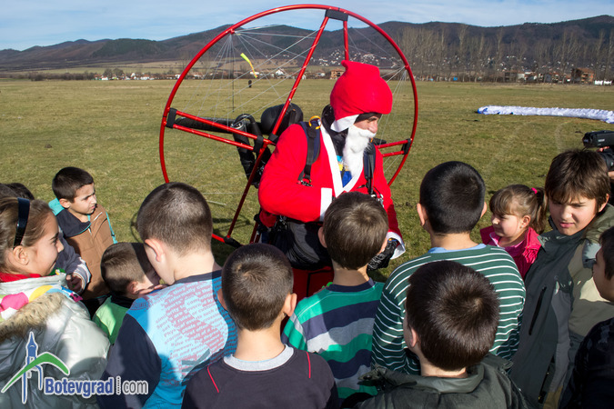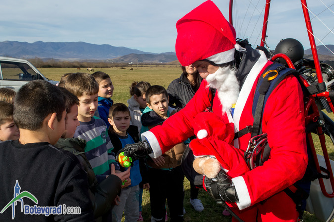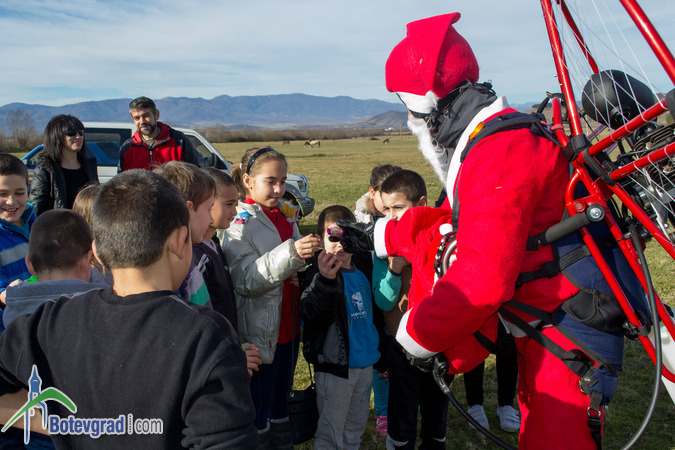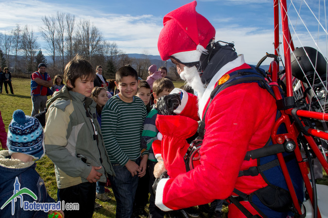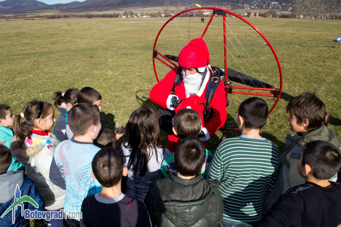 Десетки деца в Трудовец днес посрещнаха дядо Коледа. Но той пристигна не с шейна, теглена от елени, а с мотопланер. На поляната край завод „Грамер” малчуганите с любопитство и възторг наблюдаваха кръженето на дядо Коледа, преди да кацне при тях.