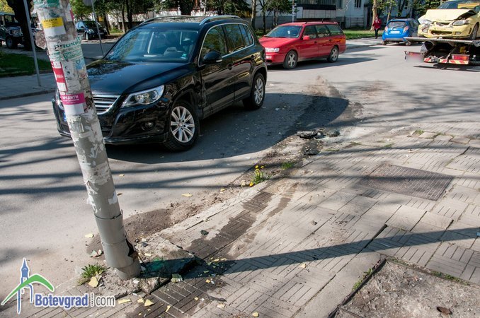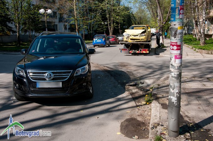 Джип Фолксваген и лек автомобил Хюндай се удариха на кръстовището на булевард „България” и улица „17-ти ноември”. Няма пострадали хора, щетите са само материални. Джипът е слизал по улица „17 ноември”, а лекият автомобил се е движил по булеварда в посока център. Причината за катастрофата е отнето предимство.