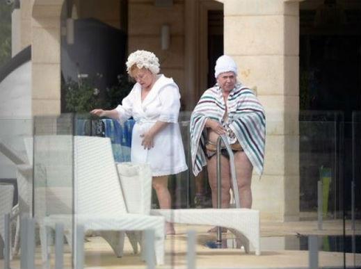 Алла бе изловена... по халат и бански. Видео показва и как Пугачова се плацика в басейн. Това, което прави впечатление и е коментирано из форумите е, че на въпросните кадри от звездата няма и грам звезден блясък.