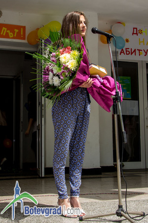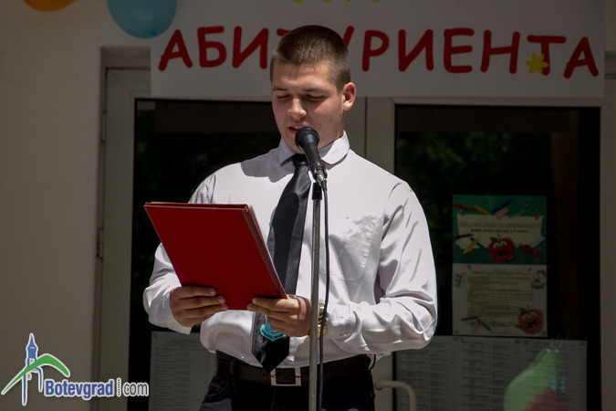 От името на абитуриентите благодарност към ръководството на училището и учителите поднесе Йонка Вутева от 12 „б” клас. Тя предаде летописната книга на гимназията на следващия випуск и изрази надежда, че те ще я попълнят със същото старание, с което го направиха настоящите дванадесетокласници.