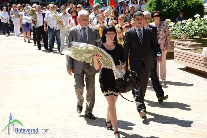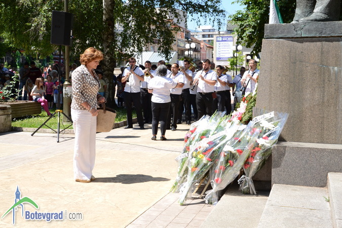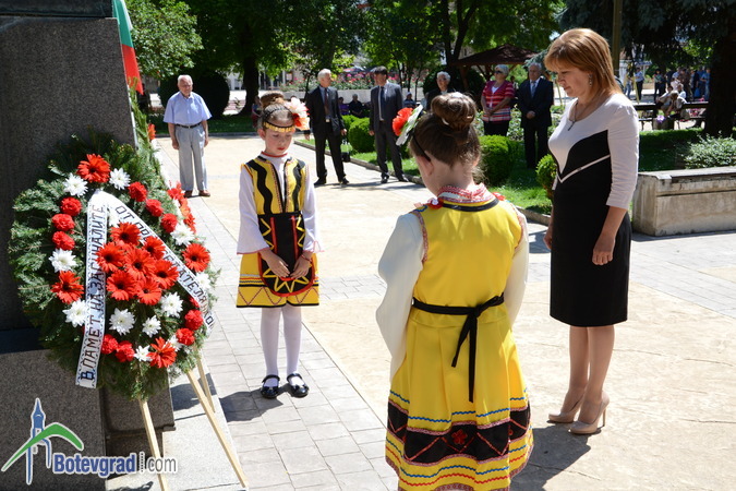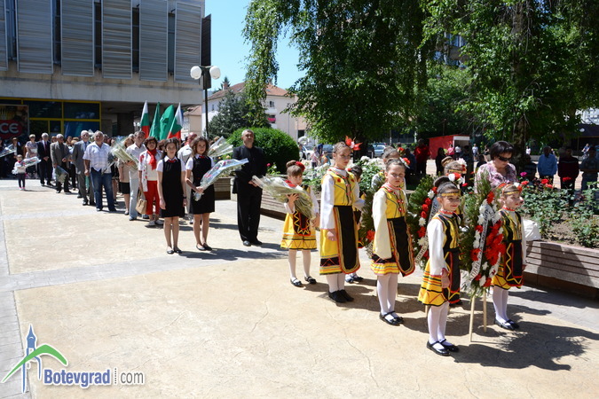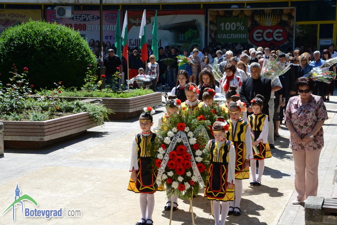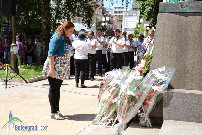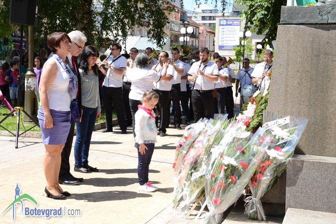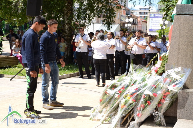 Паметникът на Христо Ботев в центъра на града бе отрупан с венци и цветя. Десетки ботевградчани сведоха глави в знак на почит пред саможертвата на един млад мъж, дръзнал с 200 пушки да събаря цяла империя! Един 28-годишен мъж, който вече 139 години определя за нас, българите, значението на думите „свобода” и „достойнство”.
