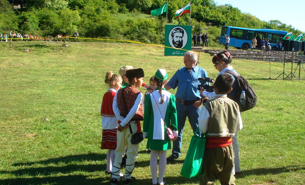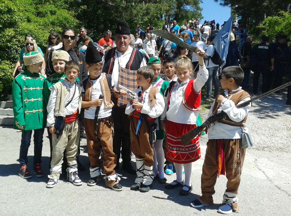 Облечени в традиционни Ботевски униформи и народни носии, учениците предизвикаха интерес във всички посетители на връх Околчица.