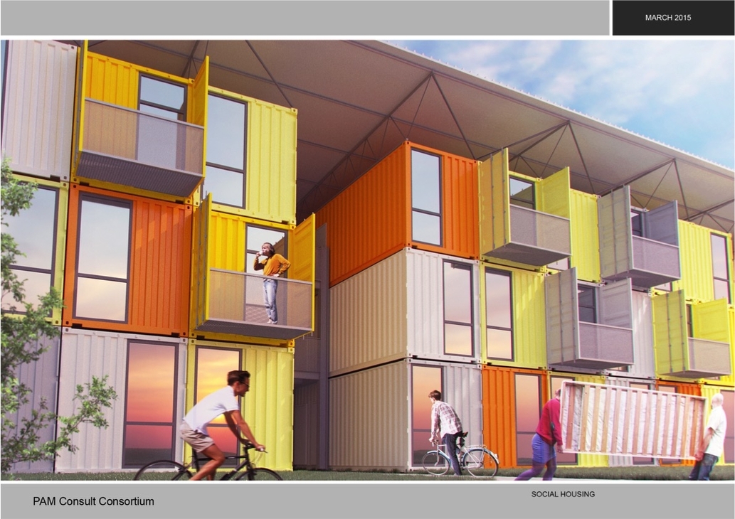 Вече е проектиран и започва строежът на първия хотел от контейнери, който ще бъде със 100 стаи и ще се намира в София. Хотелът ще бъде най-високата постройка в Европа, построена от контейнери. Освен изграждането на нискотарифни хотели, бунгала, базари и офис сгради, основна цел на проекта е да изпълнява социална функция. Предстои да се реализира първото студентско общежитие от контейнери. Създадени са проекти и за детски градини, домове за възрастни хора и др. Скоростното изграждане на тези постройки е и рационално разрешение на проблема с настаняване на хора, чиито къщи са пострадали при природни бедствия.