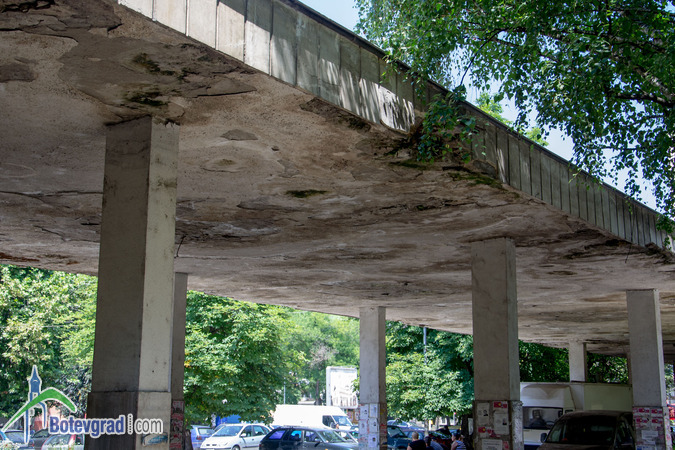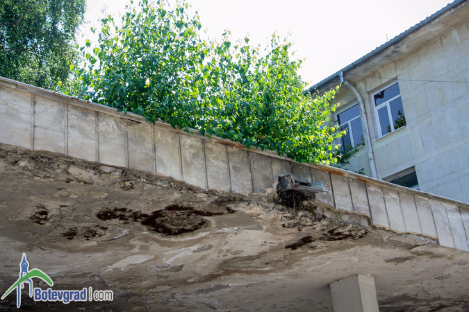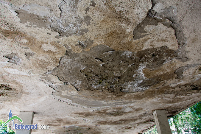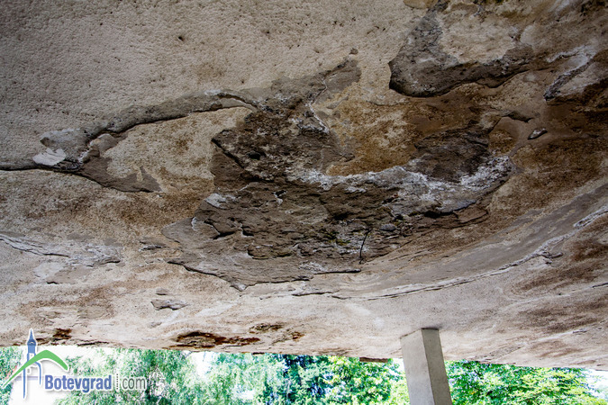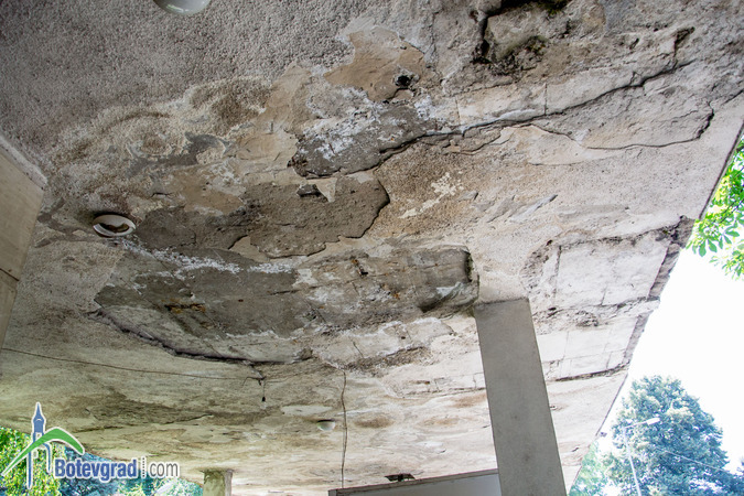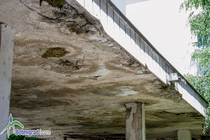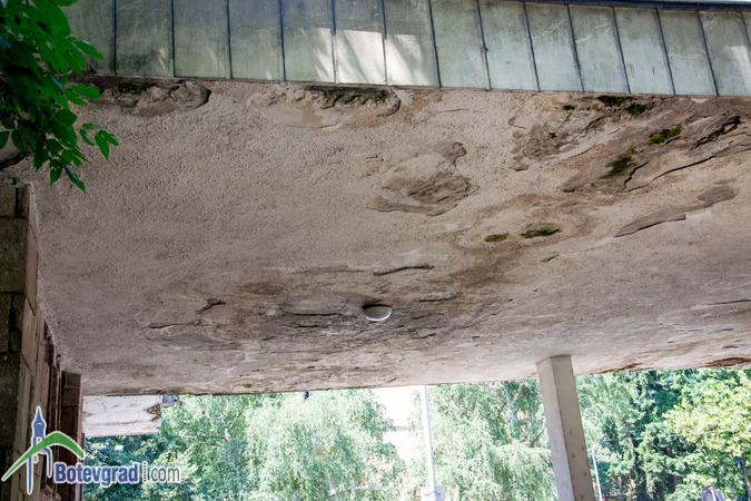 В плачевно състояние е и козирката на поликлиниката. Тя също е потенциално опасна за гражданите, които минават под нея.
