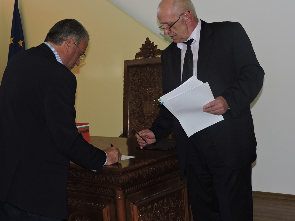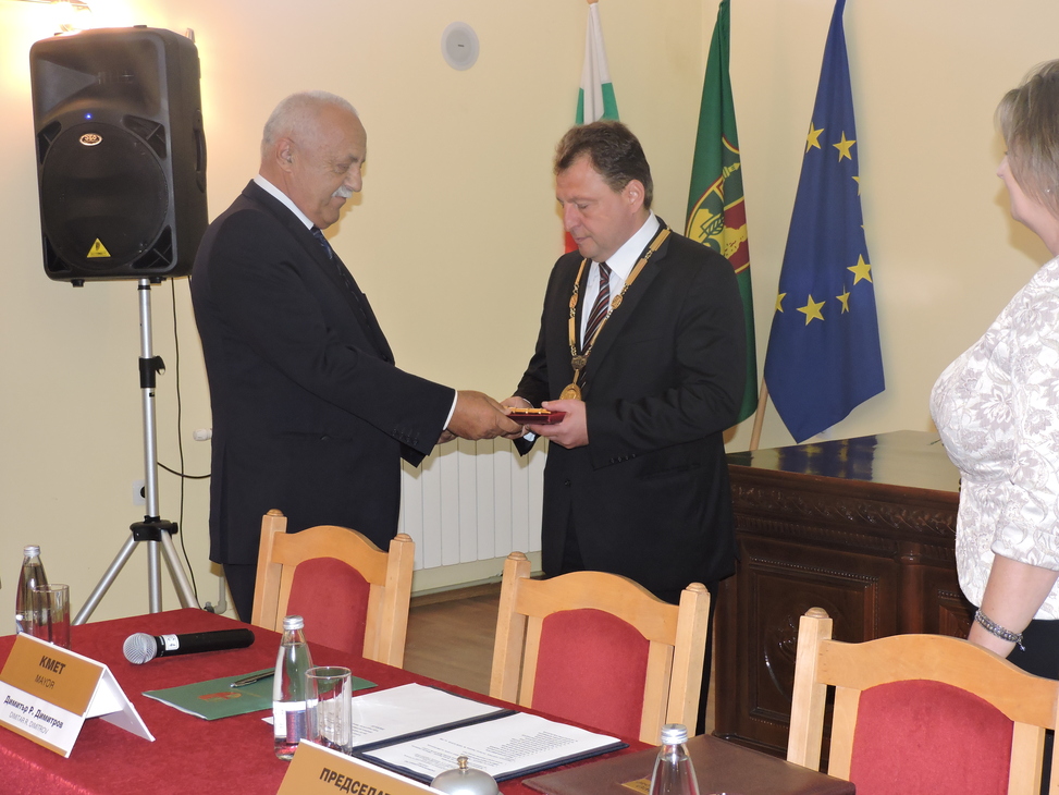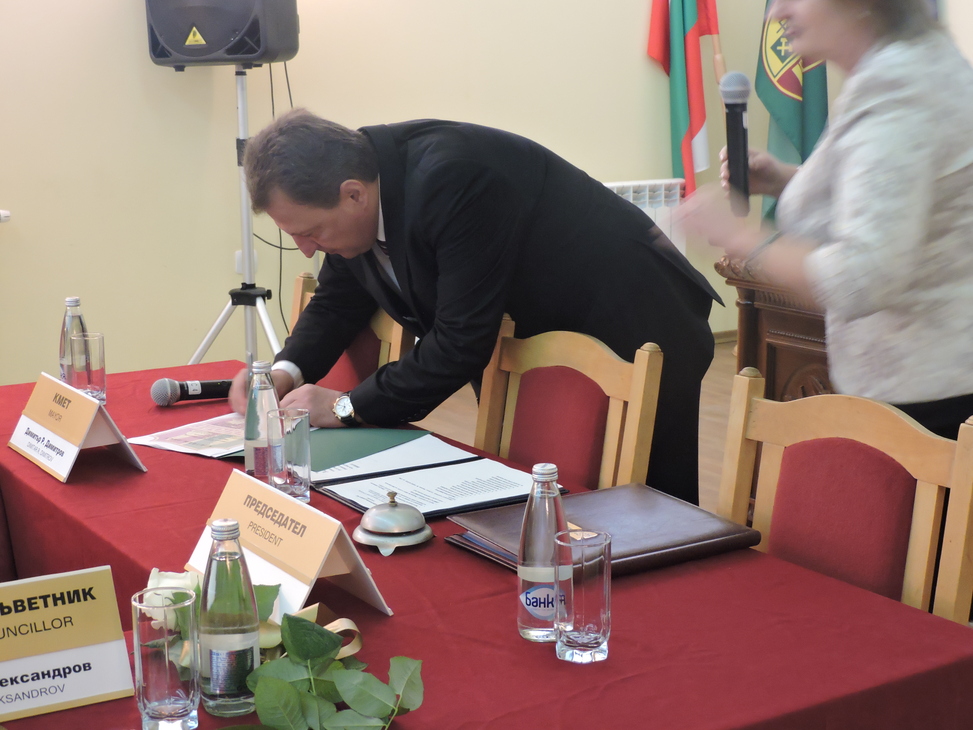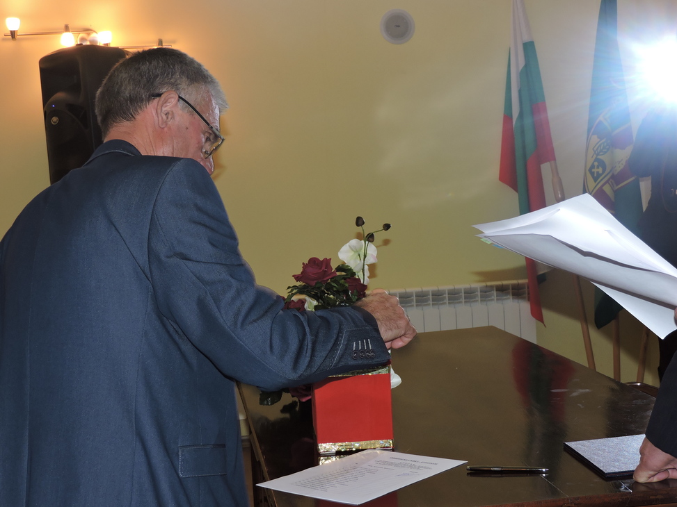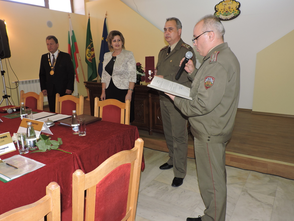 Пръв положи клетва и подписа клетвения лист новият кмет Димитър Радославов Димитров, след което получи от досегашния кмет инж. Богомил Георгиев символите на властта: огърлица и символичния ключ на град Етрополе. Като полковник от резерва инж. Богомил Георгиев получи високо отличие от името на командването на Българската армия.