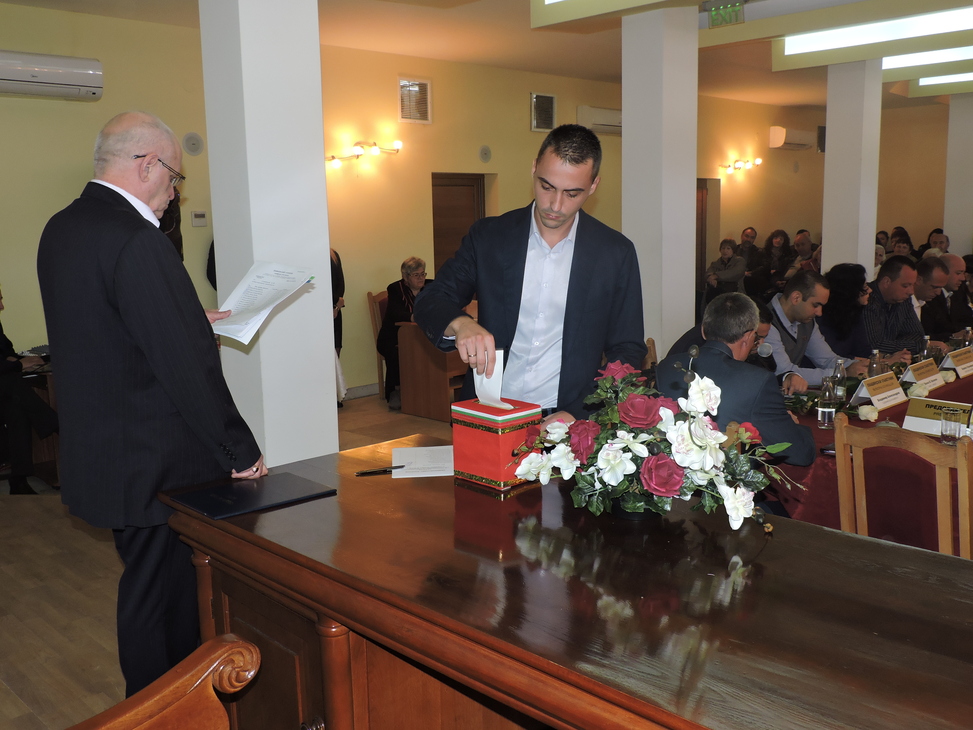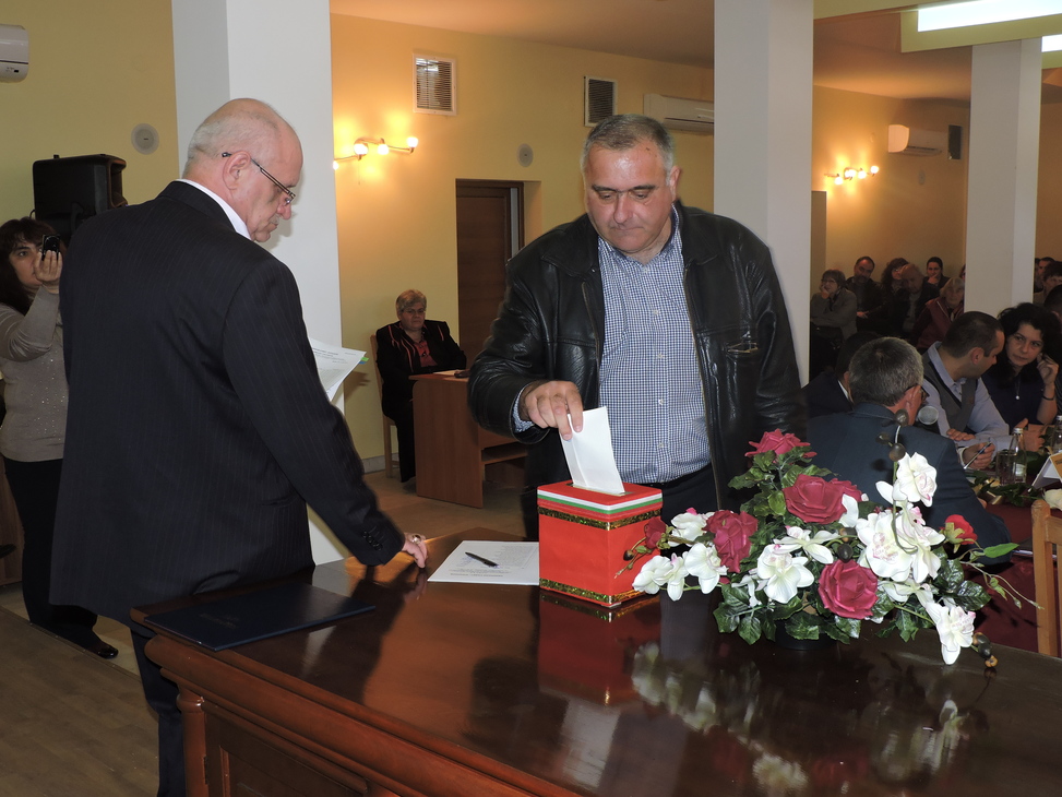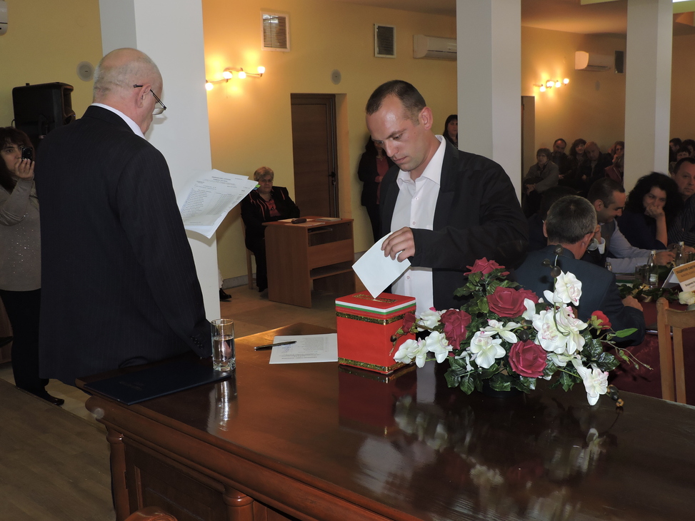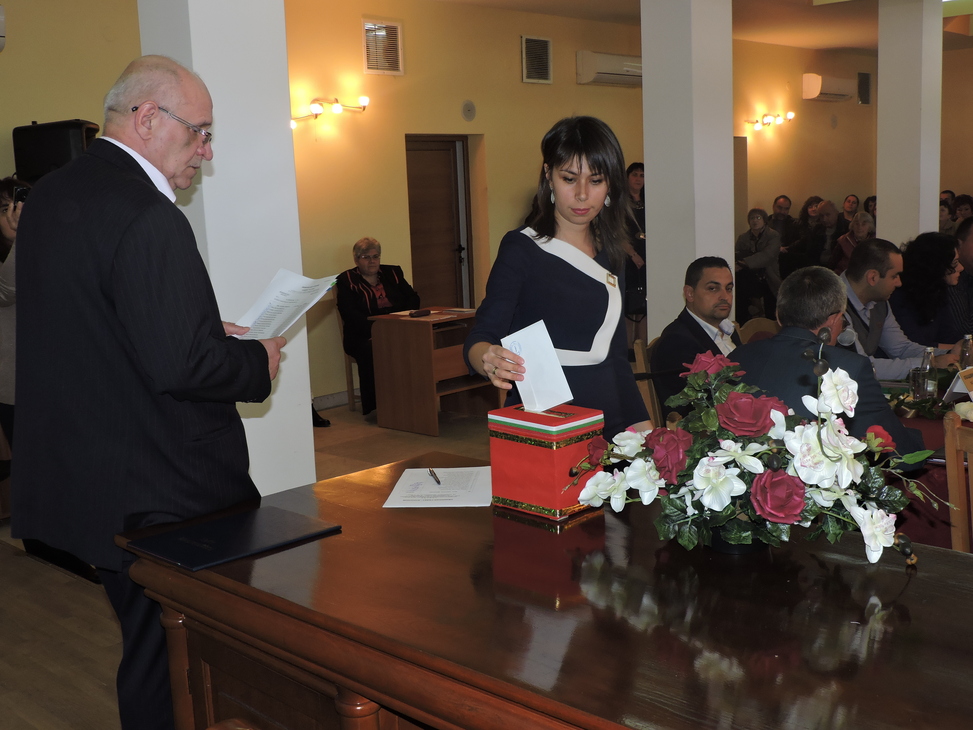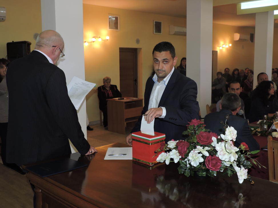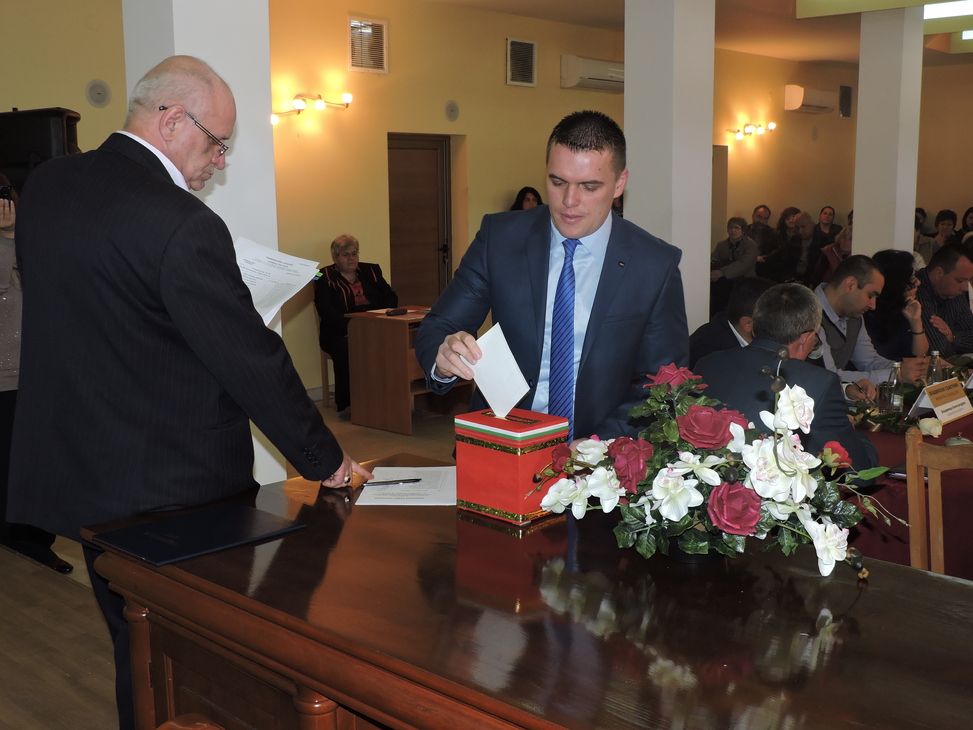 Бяха предложени две кандидатури за председател на Общинския съвет: на Марин Василев Маринов /предложен от Емил Димитров/ и на Боряна Ценова Керемидска /предложена от Владимир Александров/. След проведеното тайно гласуване с 11 срещу 6 за председател беше избран Марин Василев Маринов. Той е един от най-младите съветници - на 29 години.