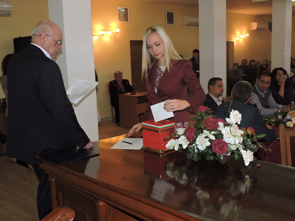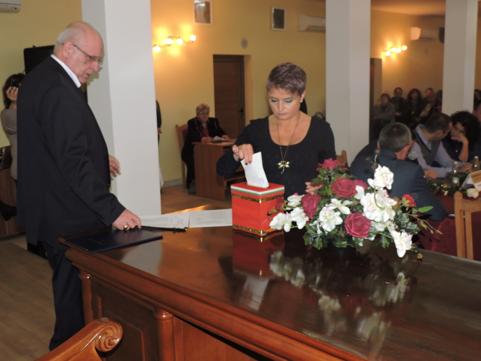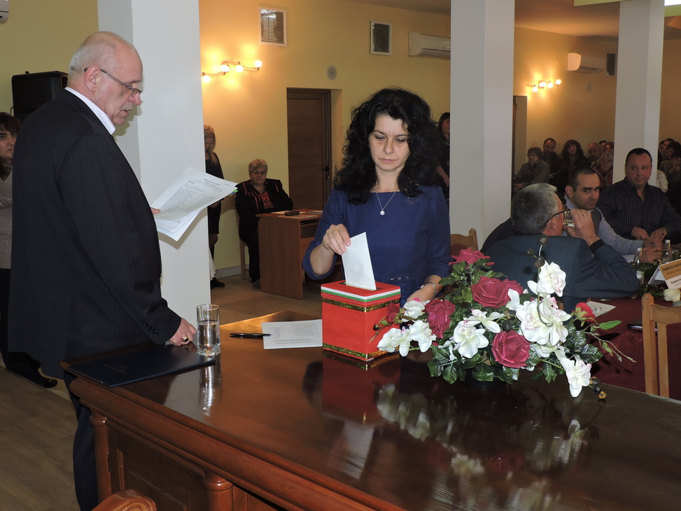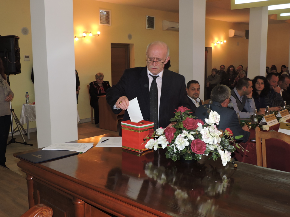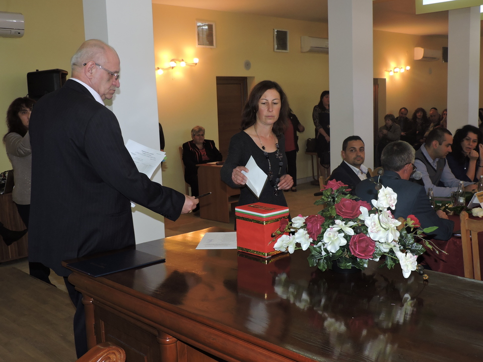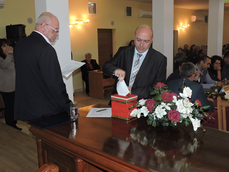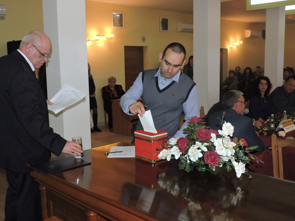 Бяха предложени две кандидатури за председател на Общинския съвет: на Марин Василев Маринов /предложен от Емил Димитров/ и на Боряна Ценова Керемидска /предложена от Владимир Александров/. След проведеното тайно гласуване с 11 срещу 6 за председател беше избран Марин Василев Маринов. Той е един от най-младите съветници - на 29 години.