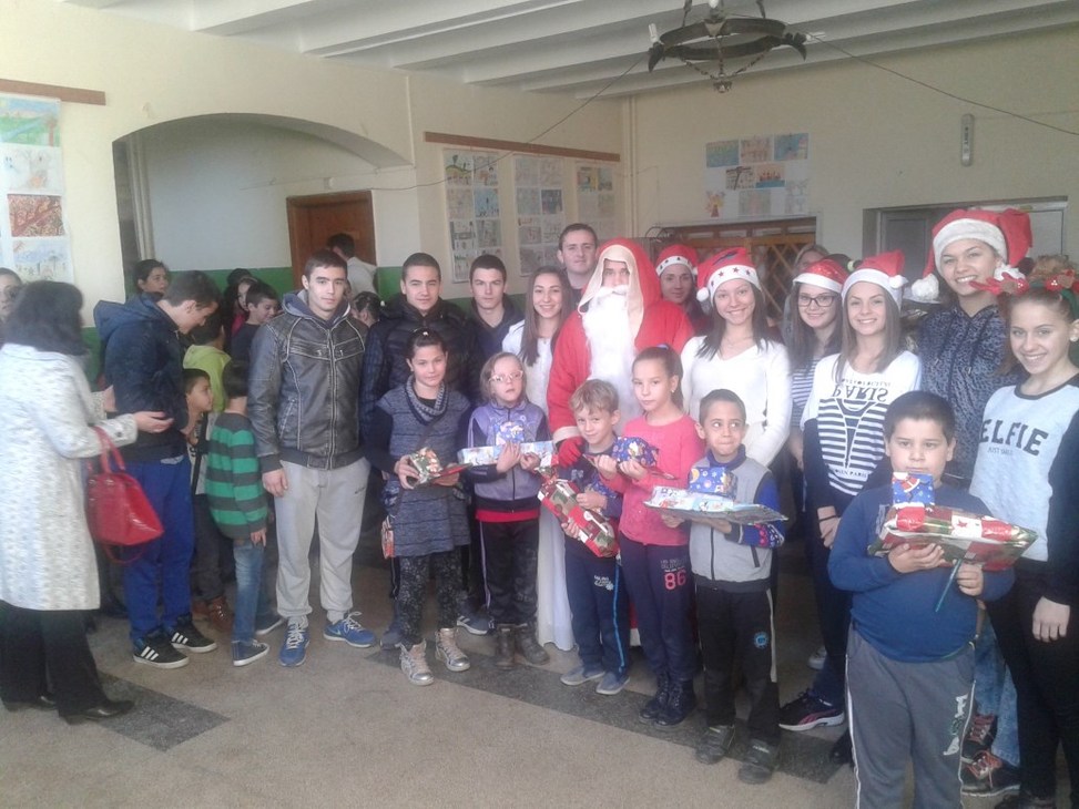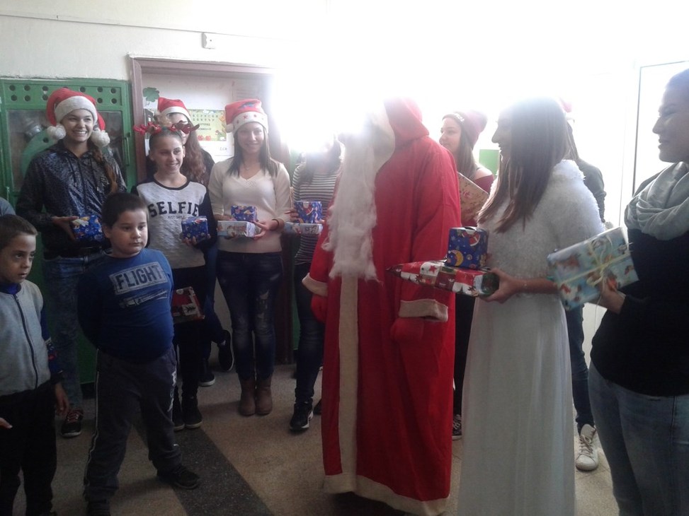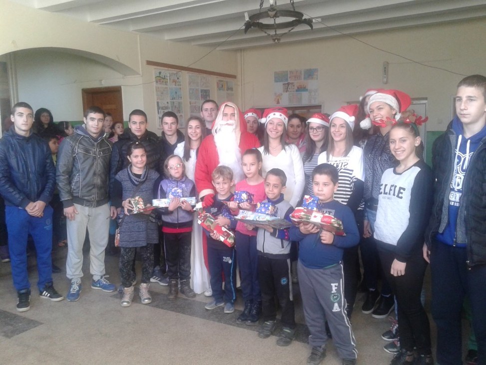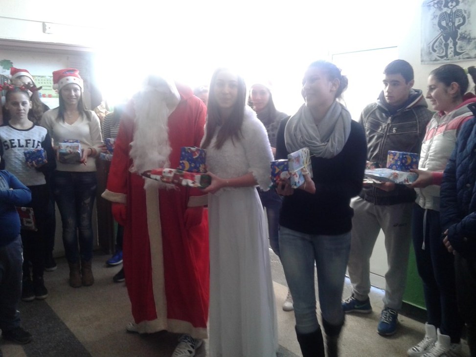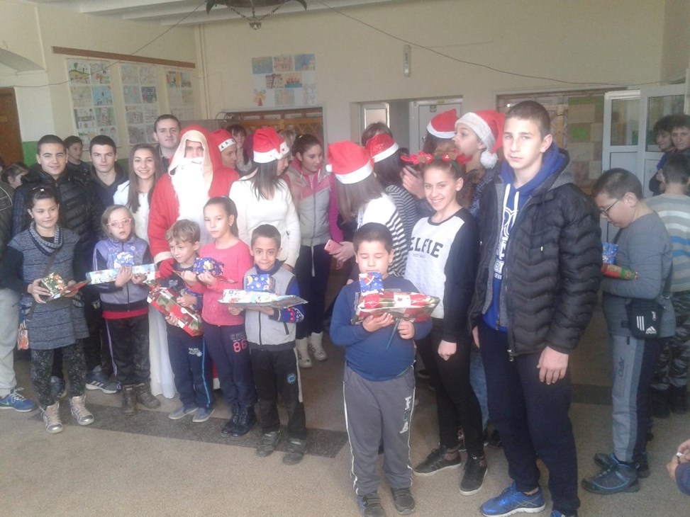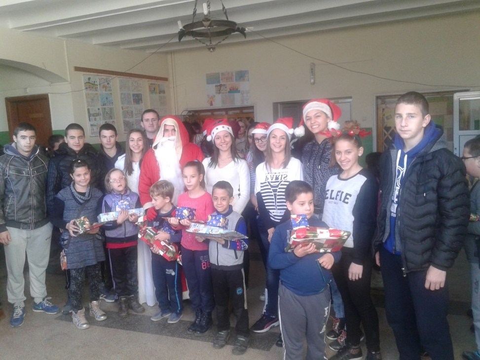 На 18.12.2015г. учениците, сред които добрият Дядо Коледа, Снежанка и джуджета раздадоха на всяко едно дете подарък.