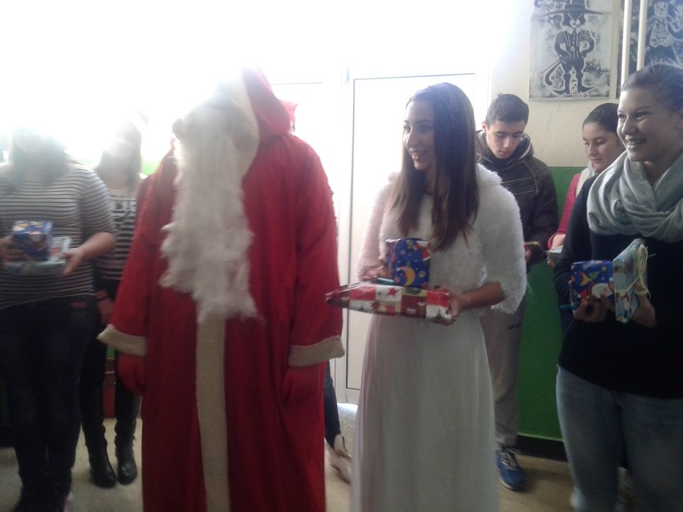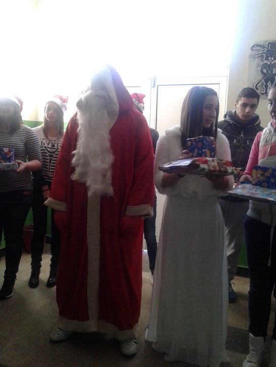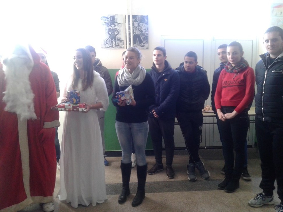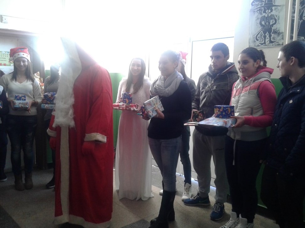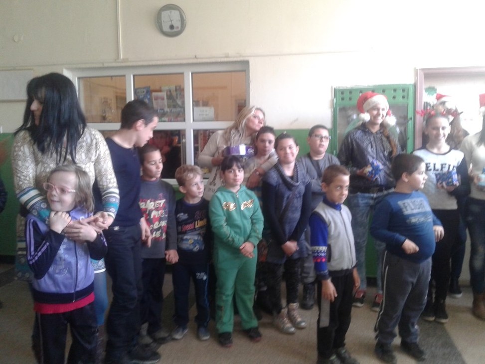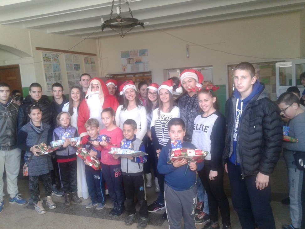 На 18.12.2015г. учениците, сред които добрият Дядо Коледа, Снежанка и джуджета раздадоха на всяко едно дете подарък.