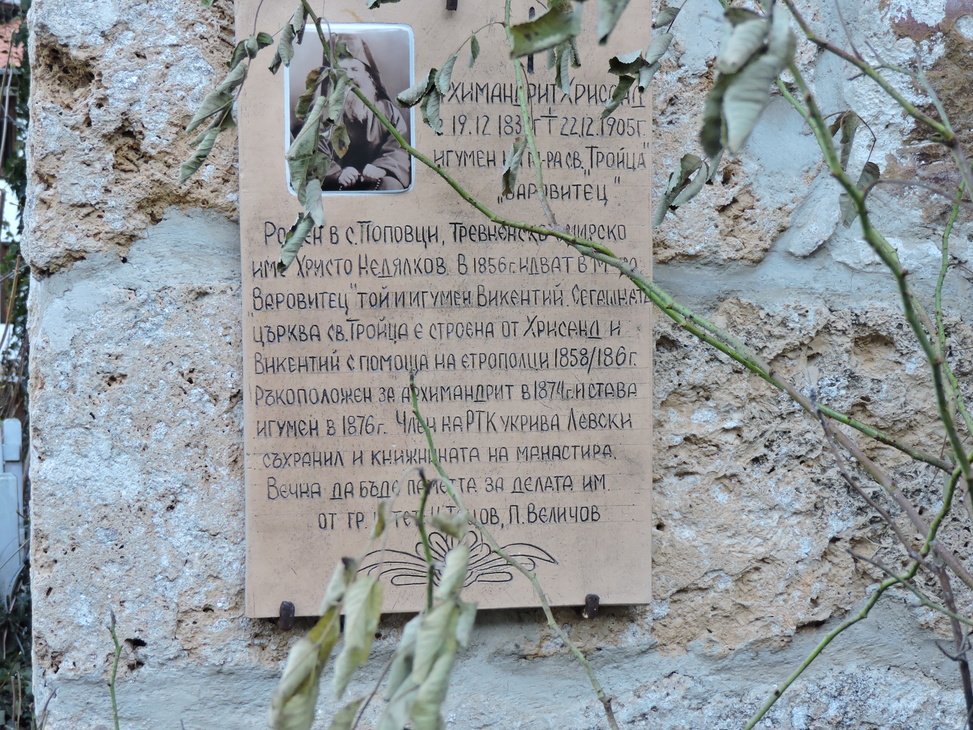 Архимандрит Хрисант е строил църквата” Св. Троица” в м-ра ‘Варовитец’ над Етрополе, като животът му е отдаден в служба на Бог и на българския род.