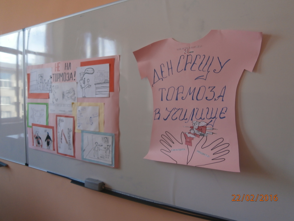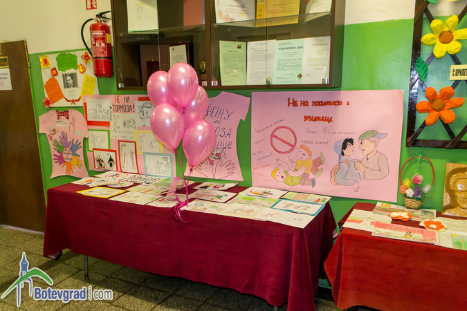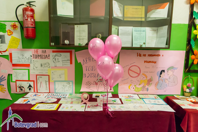 Тъй като Световният ден против тормоза в училище, популярен като Ден на розовата фланелка, се отбелязва всяка последна сряда от месец февруари, днес учениците в ОУ „Н. Й. Вапцаров” пуснаха розови балони във въздуха и откриха тематична изложба на рисунки и табла. Изложбата е подредена във фоайето на училището.