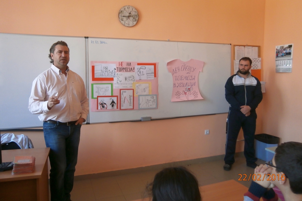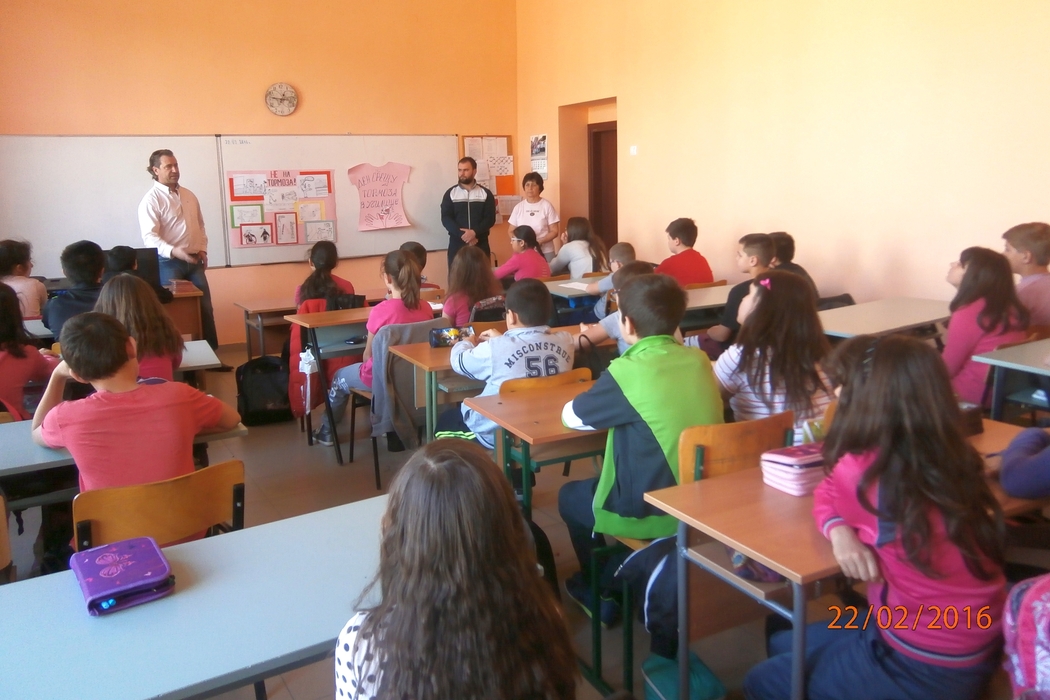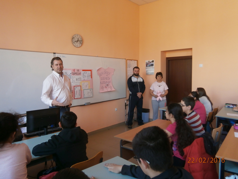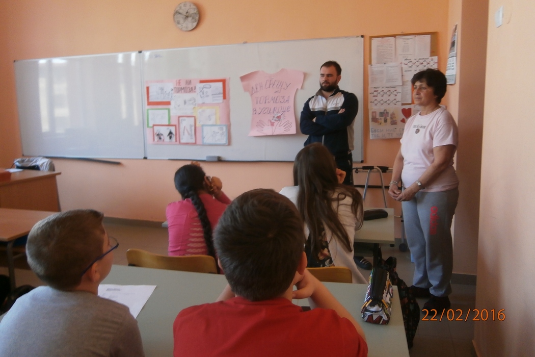 „С редица прояви ОУ „Н. Й. Вапцаров” отбеляза Деня на розовата фланелка. Те започнаха от началото на седмицата и действително създадоха празнично настроение в училището. С оспорвани състезания в часовете по физическо възпитание и спорт, с рисунки и табла, изготвени в часовете по изобразително изкуство, учениците казаха „не на тормоза в училище”. Най-вълнуваща бяха срещите с татковците, които се отзоваха на поканата ни и се включат в инициативата „Мъже срещу тормоза: на нас ни пука за нашите деца!”. Срещите се проведоха в часовете на класа. Ролята на бащата в семейството, бащата - стожер на семейството, бащата – пазител на добрите нрави – това бяха част от дискутираните теми”, разказа педагогическият съветник в ОУ „Н. Й. Вапцаров” Илияна Григорова.