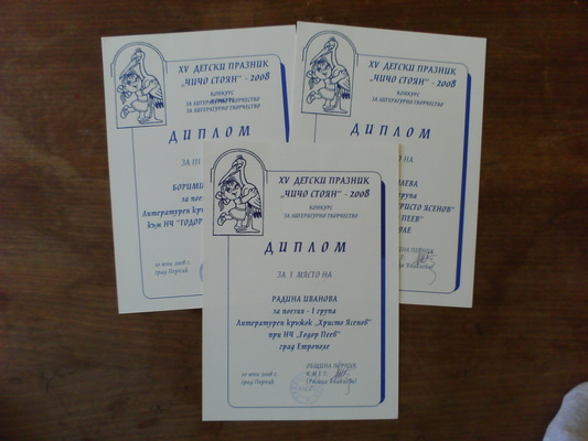 Първо място за Радина Валентинова Иванова – /Диплом и 25 лева/