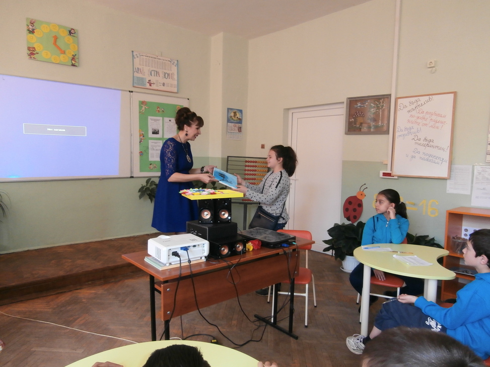 Началният учител Цанка Маринова, председател на училищния екип за комплексно педагогическо оценяване, съвместно с ресурсния учител Маргарита Донова и ученици от IV “а” клас подготвиха занятието.