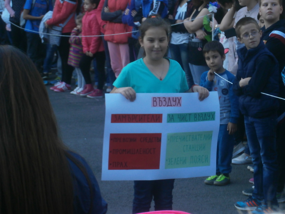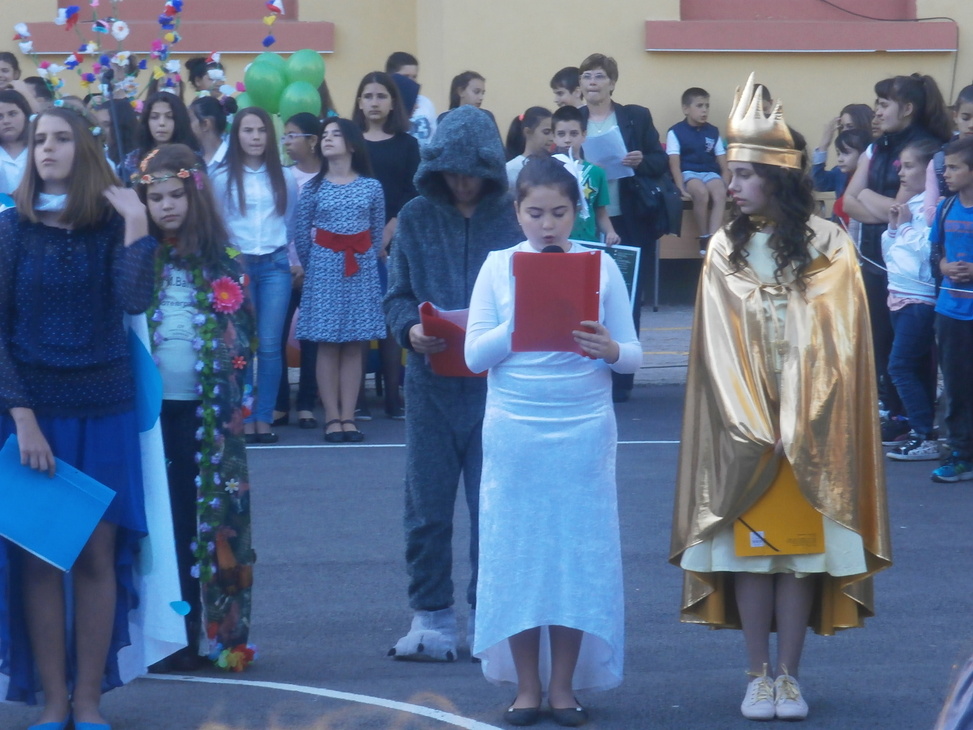 Програмата бе изпълнена с много танци, песни и стихотворения, посветени на природата и нейното изящество. Възпитаниците на основното училище иформираха гостите си за безбройните начини, по които замърсяваме нашата Земя. Те отправиха призив към присъстващи - да организират колкото се може повече акции за опазване на природата. Дори демонстрираха, чрез ревю, как може отпадъчните материали да се използват за направата на модни дрехи.