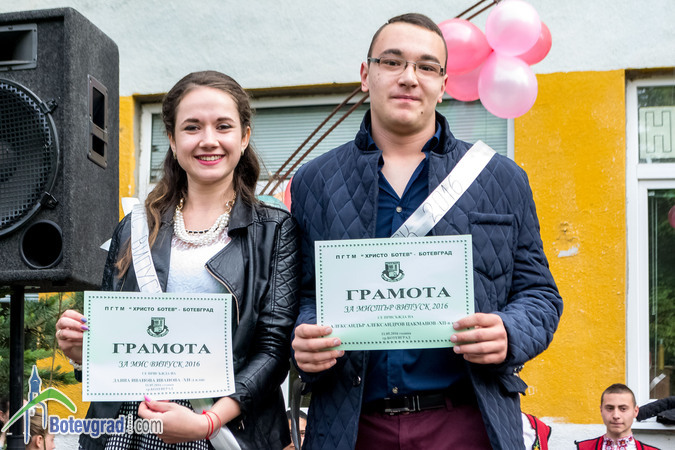 Тази сутрин в двора на ПГТМ „Христо Ботев” се състоя тържеството по изпращане на Випуск 2016 на училището. По традиция програмата започна с посрещане на знамето на учебното заведение. Директорът на професионалната гимназия инж. Добрин Христов отправи благопожелания към завършващите. Той ги призова да запазят добри отношения помежду си и никога да не забравят родното училище. Хубави пожелания за здраве, късмет и реализирани мечти отправиха и учениците от 11-тите класове.