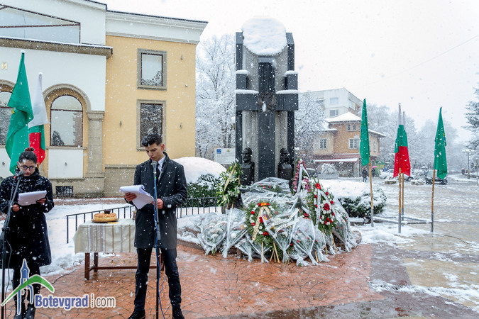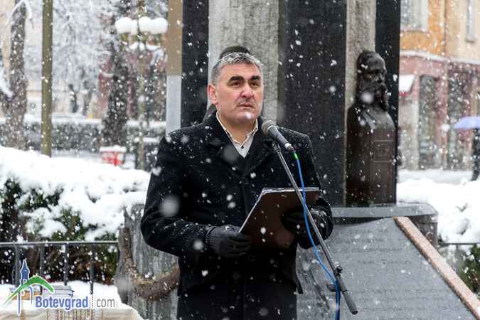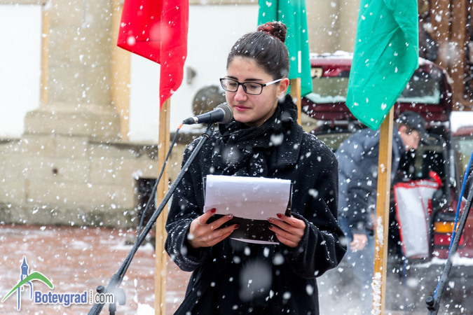 Историческо слово произнесе Николай Пеев – учител по история и цивилизация в ППМГ „Акад. проф. д-р Асен Златаров”. Той припомни накратко събития, довели до освобождението на тогавашната Орханийска околия и наши град. „Говорейки за паметните събития отпреди 139 години, в нашето съзнание се очертава редица думи, между които с най-голяма важност изникват война, обсади, атаки на нож, жертви, канонада от артилерийски изстрели. Това е времето на поредната Руско-турска война, при която всяка от силите преследва своите интереси, но за нас, българите, тази война остава с едно единствено име, а именно – освободителна. На картата на военните събития се редят свети места, в които е попила кръвта на множество български опълченци, на руски, румънски, беларуски, украински и финландски войници”, каза Николай Пеев в словото си.