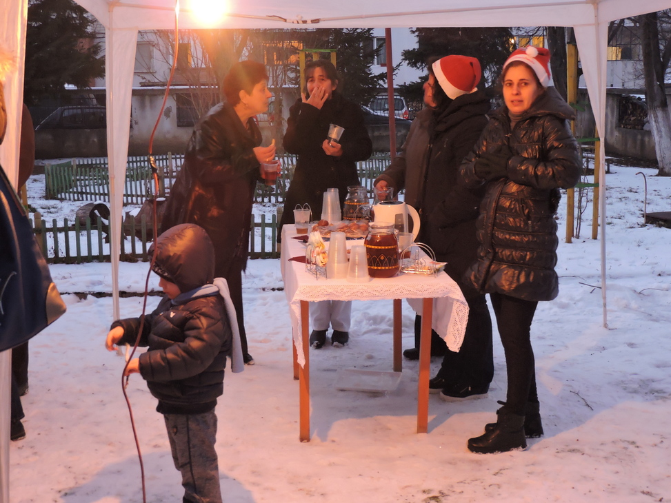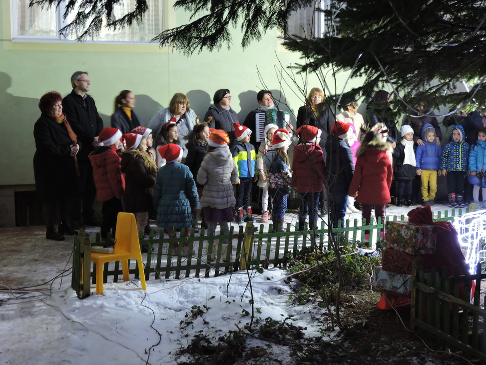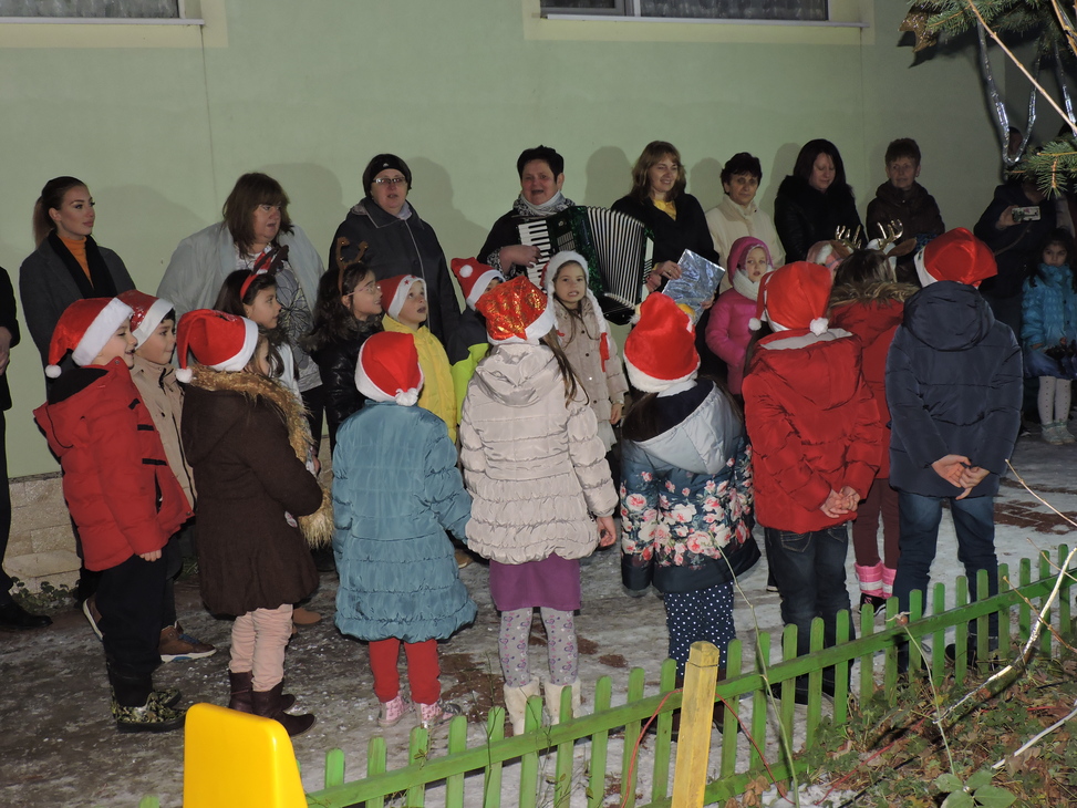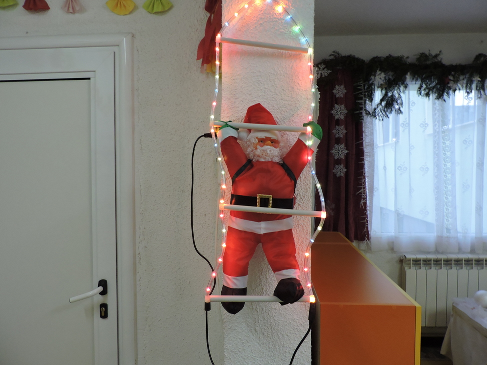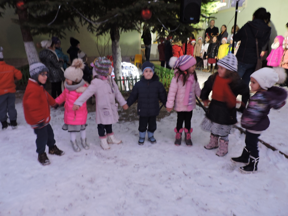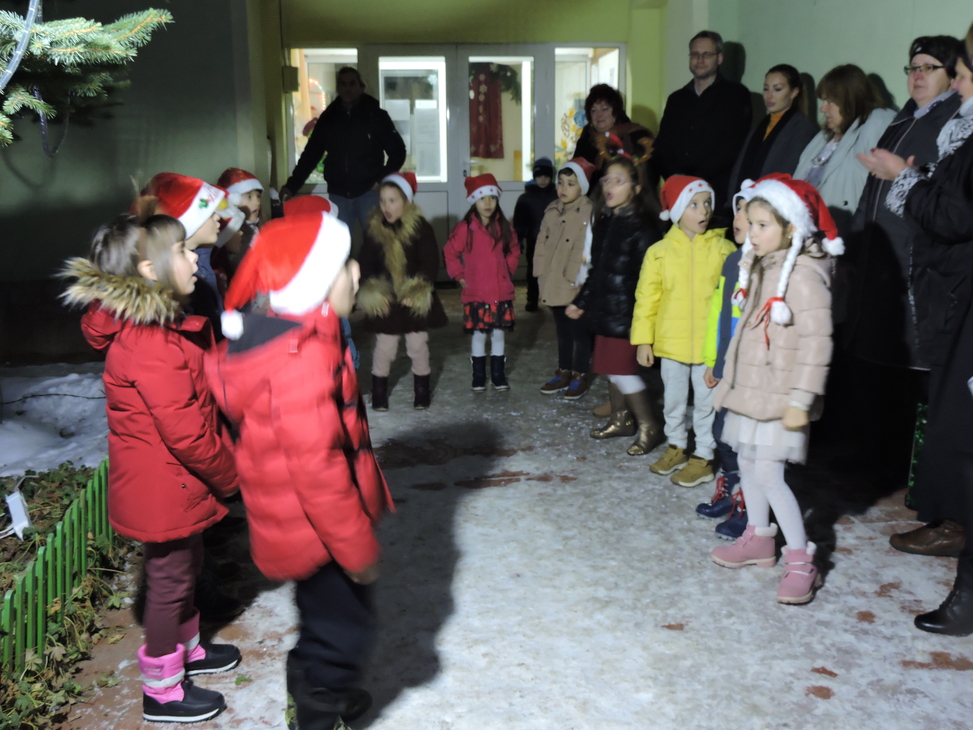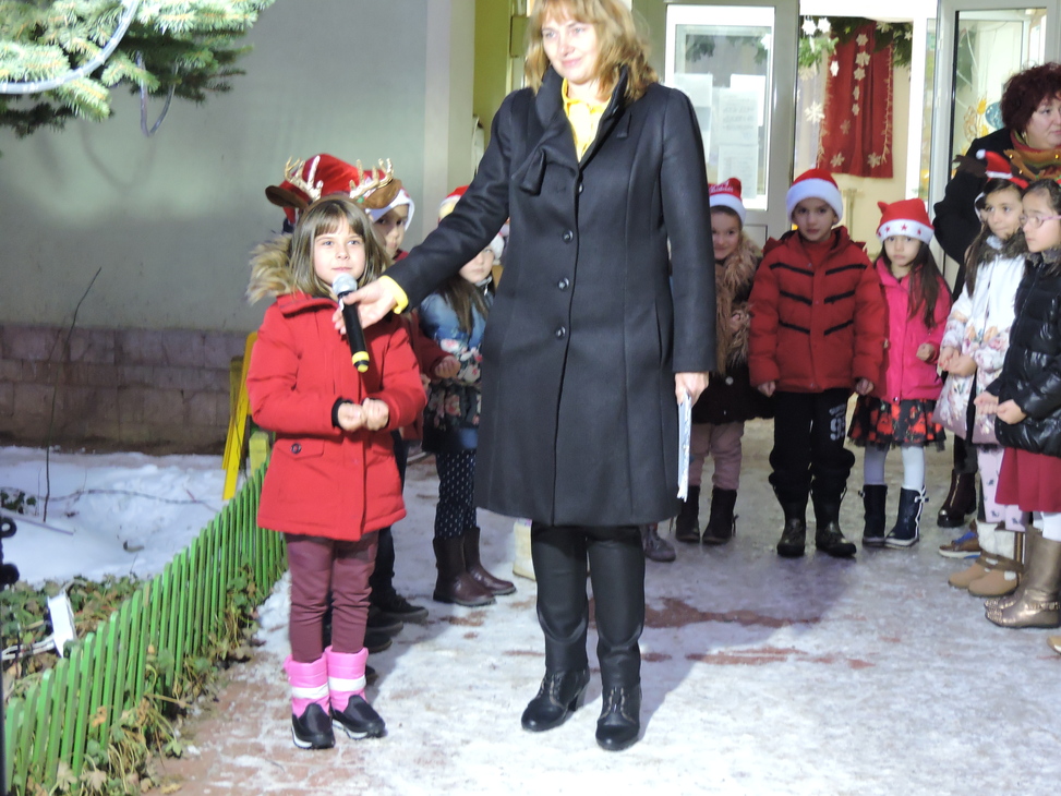 Някак си, по-празнични бяха песничките и стихчетата на децата, с които поздравиха своите родители с настъпващите празници. Под празнично украсената естествена елха пред входа на градината поклащаше уморено глава светещият „елен”, докарал за послушните деца пълна шейна с играчки. Украсата в градината също подсеща, че наближават празници.