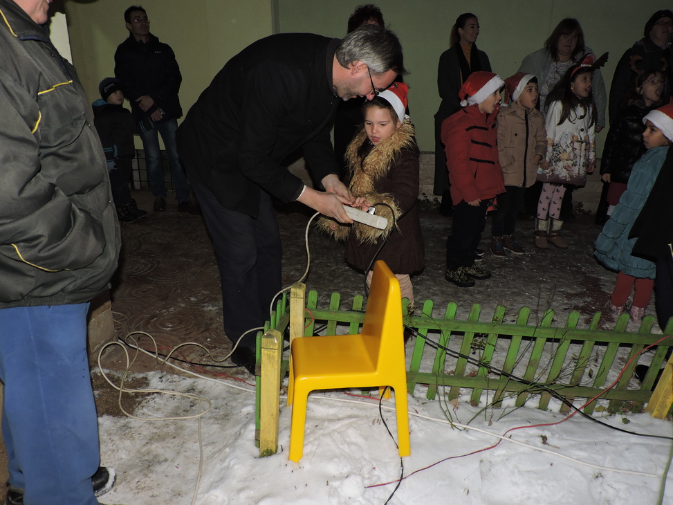 Гост на децата беше заместник-кметът Стефан Борисов, който с асистенството на едно от децата, изчакаха обратното отброяване и натиснаха „вълшебното копче”, което накара лампичките да светнат.