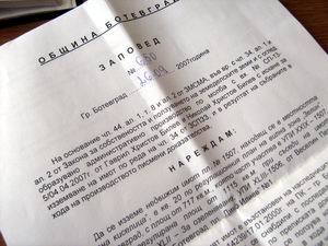 Ботевградчанин е получил заповед от изпълняващия длъжността кмет на общината В. Гарвански да напусне “доброволно” имота си във вилна зона Зелин. Имотът е възстановен на други лица с решение на Поземлената комисия, въз основа, на което те са се сдобили с нотариален акт – това е първият мотив, който се изтъква в заповедта. Вторият е, че имотът не е застроен в законно разрешения срок. Човекът трябва в 14 дневен срок да се изнесе от вилното място. В противен случай то ще му бъде иззето принудително със съдействието на полицията – пише в заповедта.
