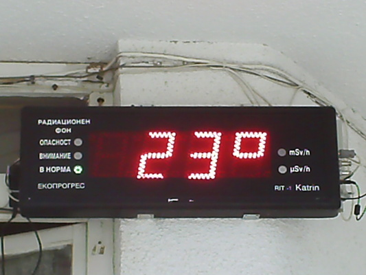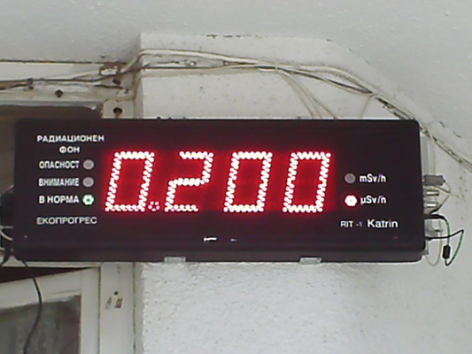 В 10:31 часа направихме и снимки на таблото пред входа на Общината, което показва стойностите на радиационния фон. Показанията бяха наистина далеч под допустимите норми за облъчване.