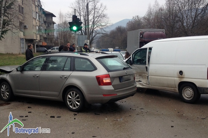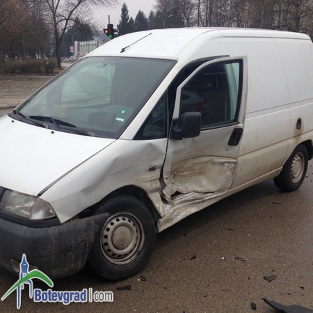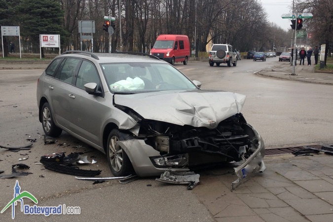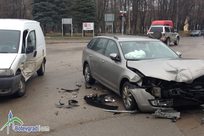 Лекотоварен автомобил и лека кола „Шкода” се удариха на светофара при спортната зала „Георги Христов”. Лекотоварният е идвал от посока Врачеш, а „Шкода”-та от гимназията. Катастрофата е предизвикана поради не осигуряване на предимство. „Шкода”-та, управлявана от жена, е ударила другия автомобил в шофьорската врата. Водачът е закаран в Спешна помощ за преглед. Няма други пострадали, щетите са само материални. На мястото има полиция. Движението в този участък се осъществява нормално.