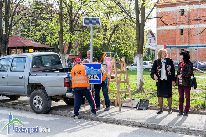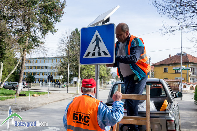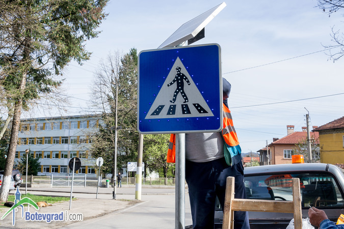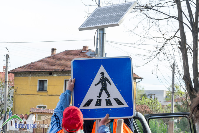 Днес започна монтирането на соларни предупредителни знаци за пешеходни пътеки. Общи 13 ще бъдат постави при училища и детски градини в Община Ботевград. Знаците са закупени със средства, събрани на благотворителен бал, организиран в края на миналата година от Ротари клуб и дамски клуб „Инер Уил” в Ботевград. Цента на едни знак е 500 лева.