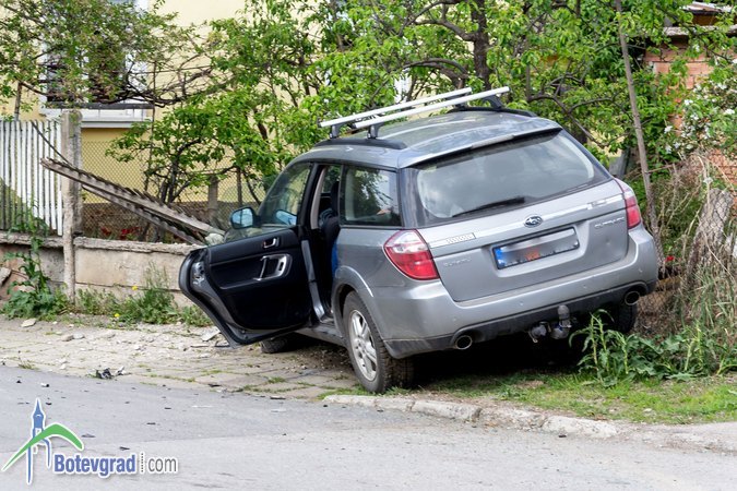 Катастрофа между два леки автомобила стана около 16 часа на кръстовището на улиците "Сан Стефано" и "Стефан Стамболов" в Ботевград. Причината за инцидента е водачът на лек автомобил „Субару”, който се е движел по ул. "Стефан Стамболов" и не е спрял на знак „Стоп”. Той удрил движещия се по ул."Сан Стефано" в посока старата църква автомобил "Дачия", след което се забил в оградата на отсрещната къща.