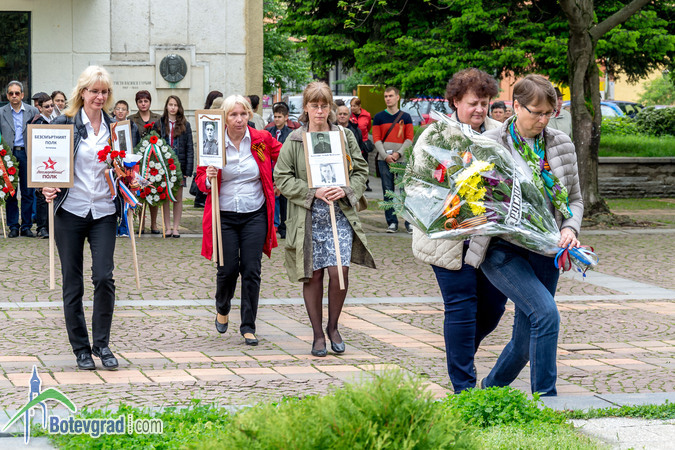 Днес се навършват 72 години от победата над хитлерофашизма. На днешния ден милиони хора по света отдават почит на воините – над 50 милиона души, загинали по бойните полета на Втората световна война. Сред тях са и ботевградчани, чиито имена са изписани на Морената при паметника на Незнайния воин. В знак на признателност към подвига и саможертвата им бяха поднесени венци и цветя от участниците в тържественото шествие, сред които бяха общинското ръководство, председателят на общинската организация на ветераните от войната – Цветан Николов, и останалите малцина живи участници във войната, представител на посолството на Русия и у нас – Мария Балашова, членове на Руския клуб в Ботевград, които носеха снимки на свои родственици, загинали на фронта.