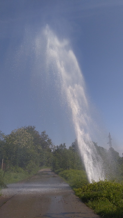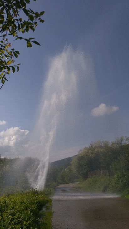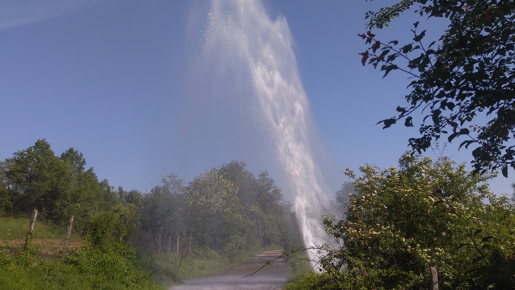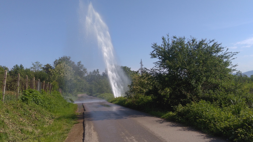 Над 10 метра воден стълб се издига в района на Жабешкото блато. Причината е спукана тръба , по която тече вода от язовир „Бебреш”. По предварителна иформация точно на това място се съединяват тръбите на „Напоителни системи” и ВиК. В момента екипи на двете фирми са на място. Най-вероятно ще се наложи „Напоителни системи” да спрат водата, която подават от язовира, докато аварията бъде отстранена.
