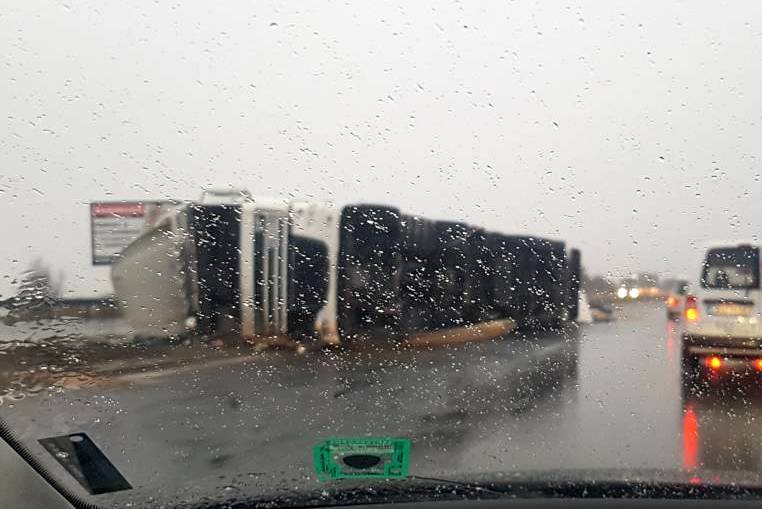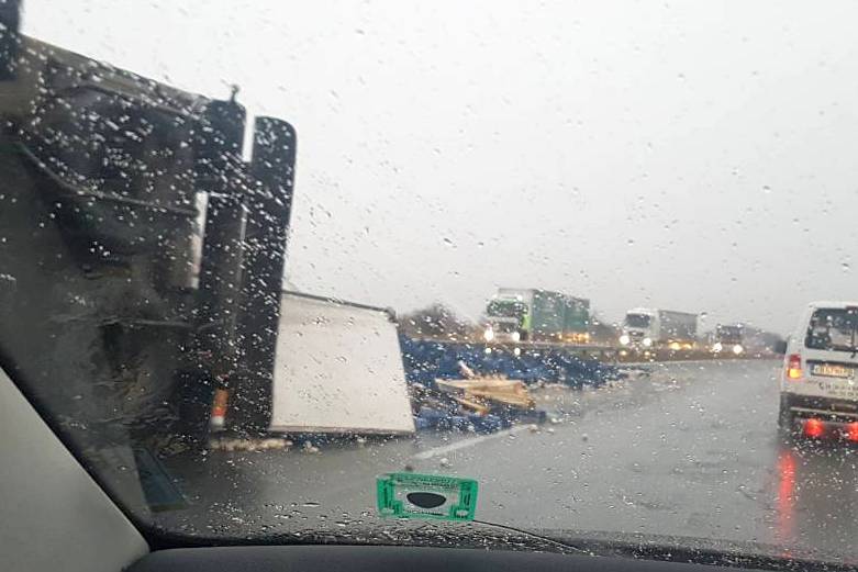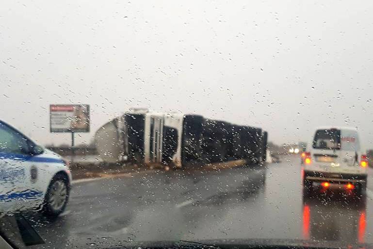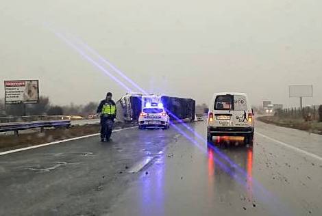 Временно движението е в една лента при км 16 (Елешница) в посока София на АМ "Хемус" поради аварирал тежкотоварен автомобил. Шофьорите да се движат с повишено внимание и съобразена скорост.