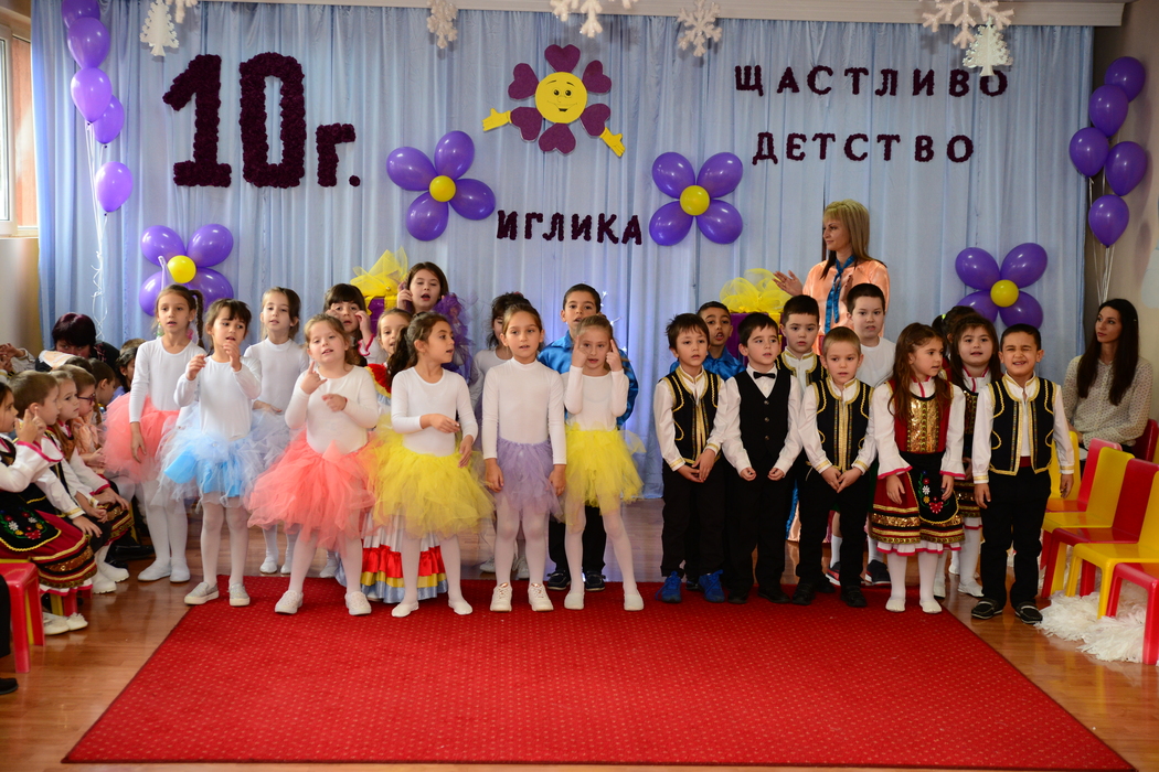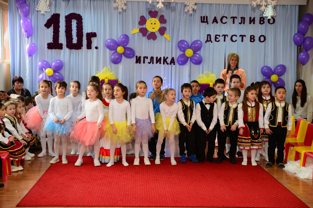 Детска градина „Иглика“ отпразнува вчера своя десети рожден ден. По този повод малчуганите и персоналт на детското заведение бяха подготвили празнична програма. С много песни и танци те зарадваха своите гости. Юбилея на детската градина уважиха: Николета Иванова - началник отдел „Хуманитарни и социални дейности“ в Община Ботевград, Цеца Иванова – дългогодишен секретар на общината, Валя Семкова – първият директор на ДГ „Иглика“, директори на детски градини в Ботевград, Иванка Ценева, Анелия Йорданова, учители, председателят и членове на Обществен съвет към ДГ „Иглика“.