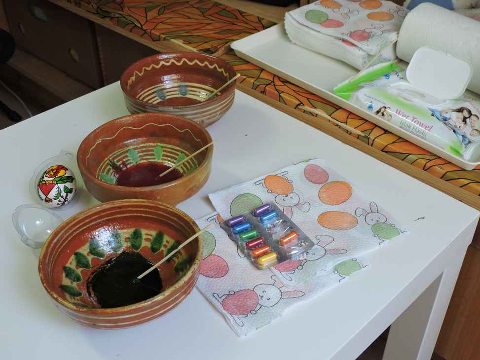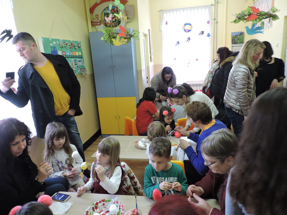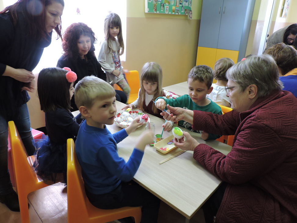 След края на празненството, чакащите с нетърпение деца и родители се включиха в боядисване на яйца.