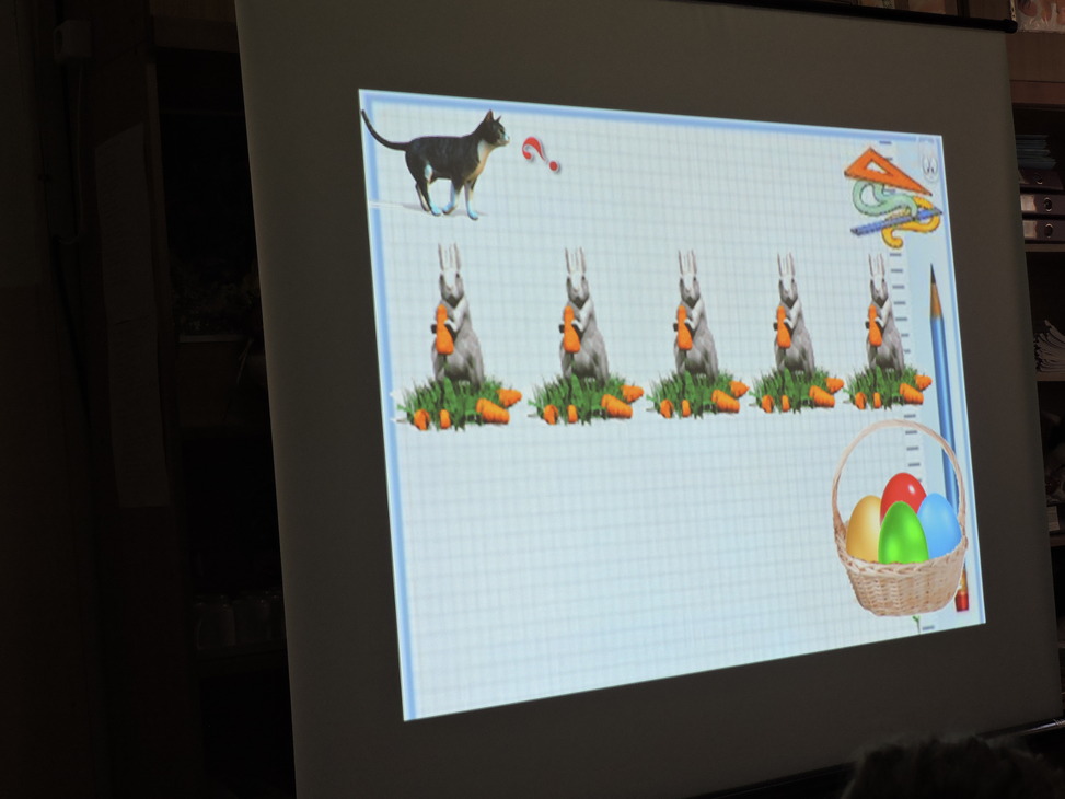 - Котенцето срещнало няколко зайчета, но не е ходило в детска градина и не можеше да ги преброи. Децата му помогнаха и то се справи отлично със задачката.