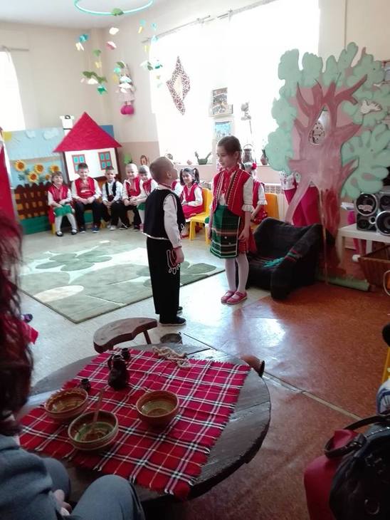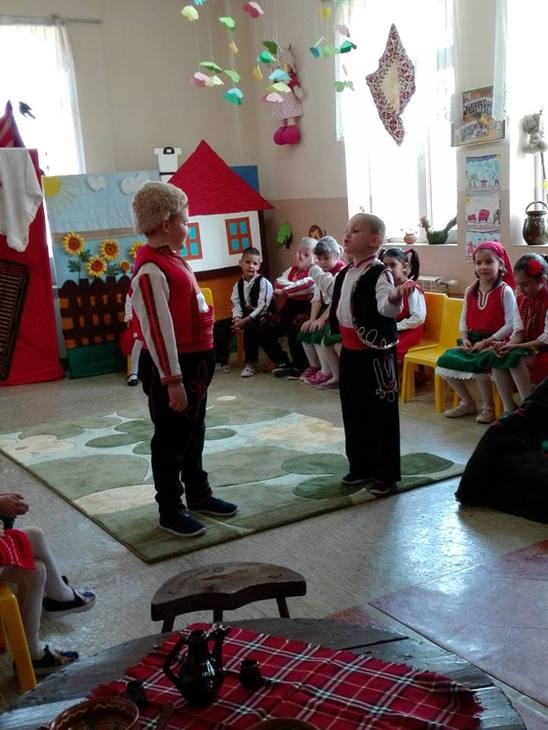 4. В четвърта подготвителна група "Пчеличка" с учителки Св. Димитрова и В. Нинова една от основните теми, по която се работи е: "Познание и възпитание чрез народните празници, традиции и обичаи". Празникът пред родителите беше под надслов "Да съхраним българското с хумористични сценки и песни от българския фолклор".