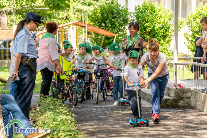 В занятието участваха всички групи на детското заведение. Те показаха майсторско управление на велосипеди, тротинетки и ролери, а по-малките се изявиха като добросъвестни пешеходци.