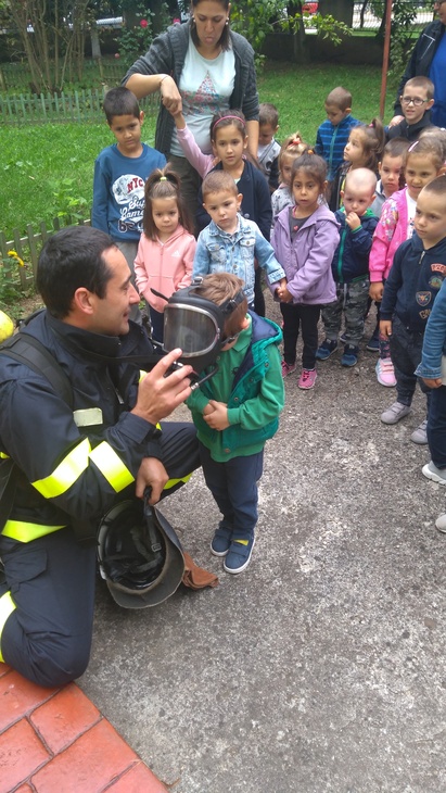 Всички деца развълнувано наблюдаваха пристигането на пожарния автомобил и слушаха звуковите сигнали от сирените на автомобила. С радост, детски трепет и любопитство те разгледаха екипировката на огнеборците и им ръкопляскаха от благодарност. Всички деца сложиха наличните на дежурство в автомобила противопожарни каски за да усетят чувството какво е да си „пожарникар”.
