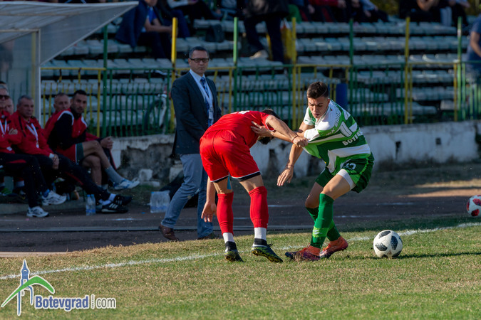 Балкан изигра много силно първо полувреме, когато бяха отбелязани и двата гола. Преди първия домакините на два пъти имаха възможност да отбележат. Настойчивостта им се отплати в 29-та минута, когато отнеха топката от защитата на Чавдар и Ивайло Бояджиев вкара за 1-0.