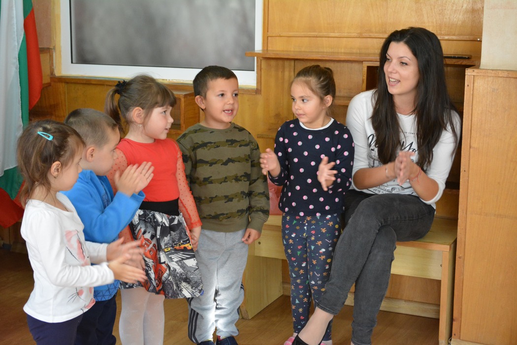 Учениците и малчуганите се забавляваха заедно, а накрая срещата им завърши с много снимки и обещание, че ще се срещнат отново.