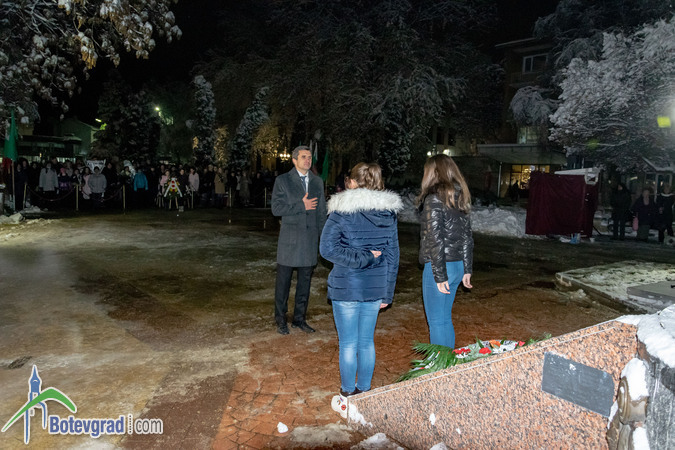 Ние в Ботевградакия край всяка година се завръщаме към кървавите за род и родина пет века. Завръщаме се, защото историята ни помни, изследва и разказва. Разказва как един малък, но висококултурен народ въстава. Въздига се срещу чуждото владичество, срещу статуквото, срещу себе си дори, в порив да отвоюва правото си на свободно бъдеще. Въздига се за възстановяването на изгубената някога държавност и за шанса ни да се приобщим към развиващия се европейски свят. Въздига се за тази едничка свята свобода. Свобода, нужна всекиму, за да изживява дните си спокойно и достойно. В онези дни на несигурност, тук на един кръстопът, се решава хода на Руско-турската война от 1877-78г. Ботевградският край става център на военни действия и събития, които надхвърлят светогледа на предците ни. Това гласеше част от словото на кмета Иван Гавалюгов по време на тържеството, което се състоя тази вечер пред паметника на Свободата. Той честити празника на всички жители на Ботевград.