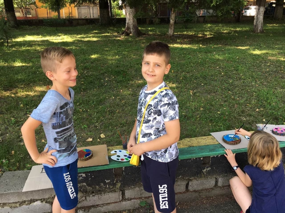 Инициативата на Община Ботевград „Весело лято в града” се пренесе днес в Центъра за социална рехабилитация и интеграция. Заниманията се проведоха на открито – под сенчестите дървета в двора на ОУ „Васил Левски”. Участниците – деца на различна възраст, бяха изправени пред предизвикателството да рисуват върху шайба от необработено дърво. Всички, без изключение, се справиха с нелесната задача.