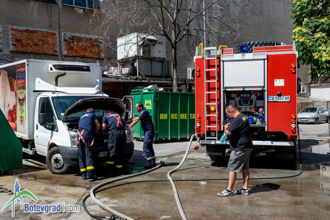 Пожарникари гасиха хладилен бус „Форд“ с пловдивска регистрация, паркиран зад супермаркет „Фреш“ в центъра на Ботевград. За щастие, до сериозен инцидент не се стигна. Шофьорът видял, че от двигателя на превозното средство излизат гъсти кълба дим и веднага сигнализирал районната противопожарна служба. Тъй като той не е местен жител, не могъл да уточни къде е паркирал буса, което наложило автомобилът на Пожарната да направи по-дълга обиколка, докато открие мястото.