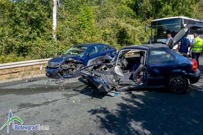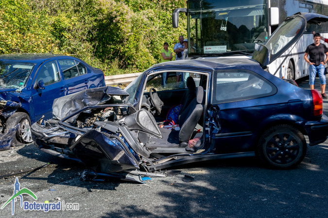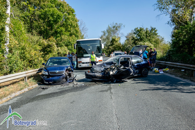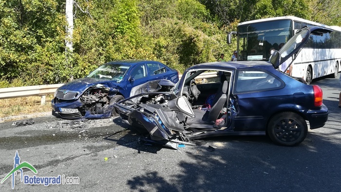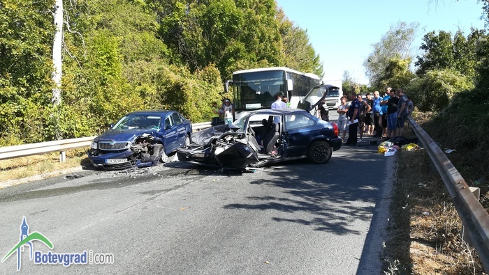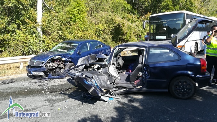 Инцидентът е станал преди около половин час в местността Копяновец между селата Новачене и Люти дол. Ударили са се „Хонда Сивик“ и „Шкода Октавия“. По непотвърдени данни в ПТП-то е участвал и автобус.