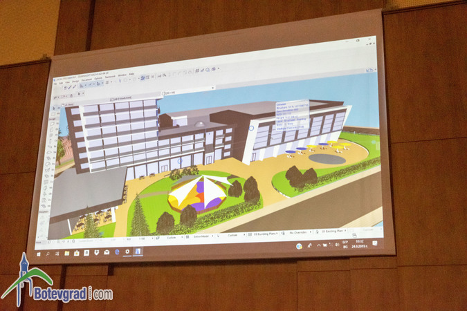 Вчера бе представен класираният на първо място проект на хотелски комплекс с паркинг и тренировъчна зала към многофункционалната „Арена Ботевград“. Да припомним, че общественото обсъждане на идейните предложения, изготвени по задание на Община Ботевград, се проведе на 6 юни 2017 год. Избрана бе идейната разработка на арх. Весела Маркова, тъй като тя най-много се доближаваше до изискванията на възложителя. Общината подписа с нея договор за реализация на проекта във фаза „технически проект“.