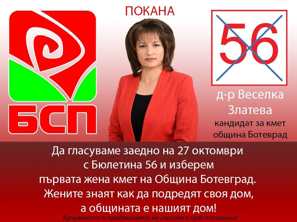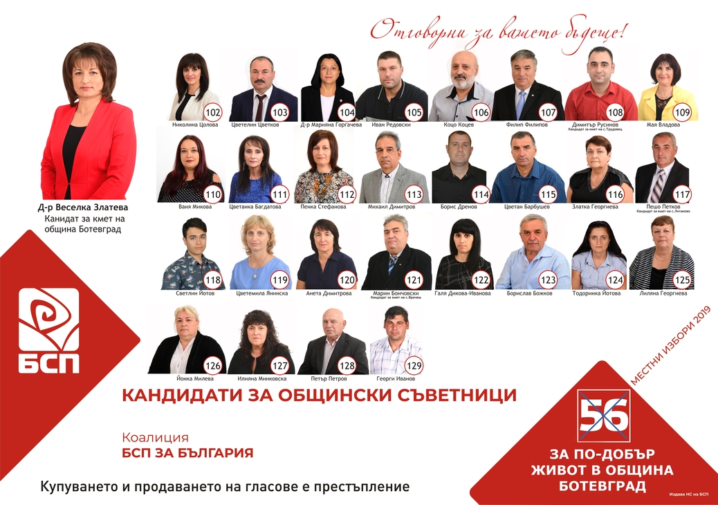 Гласувайте с бюлетина N 56 и за кандидатите за общински съветници, издигнати от Коалиция БСП за България!