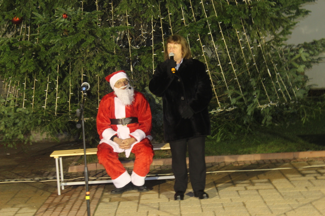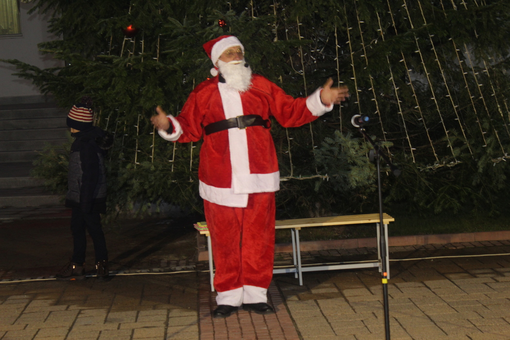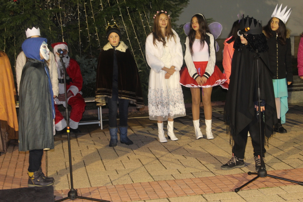 С характерния си възглас дядо Коледа /въплъщение на Иван Чиков/, дойде при децата, поздрави ги с предстоящите празници и преотстъпи пространството за програмата на Снежанка и учениците от училището.