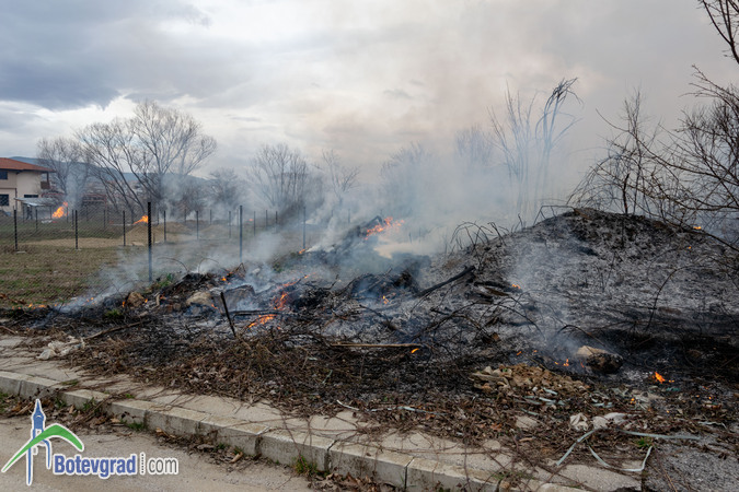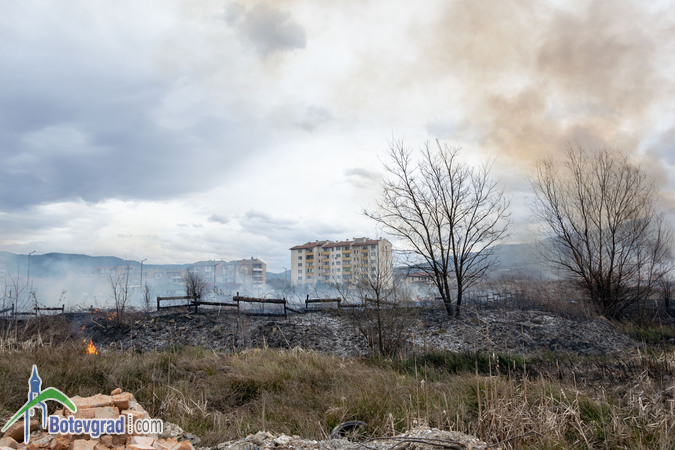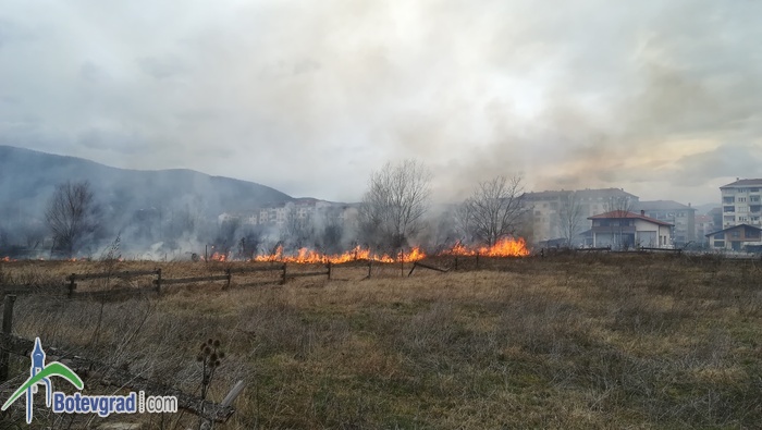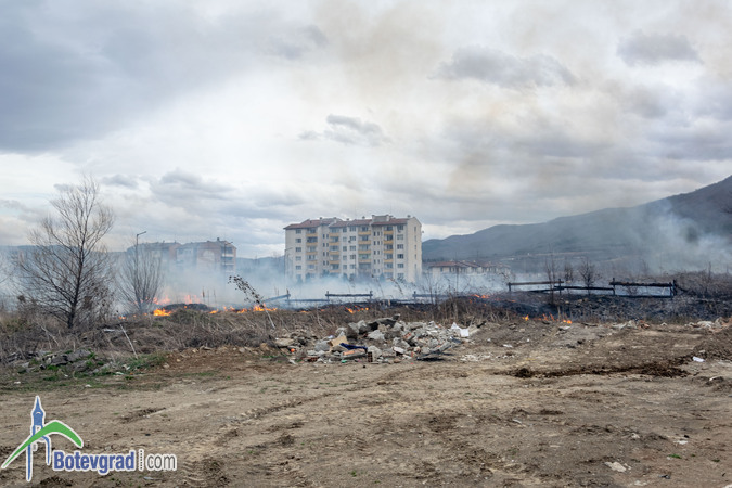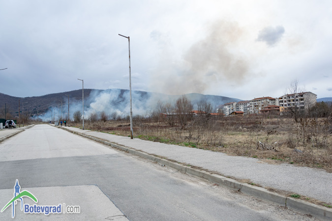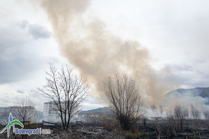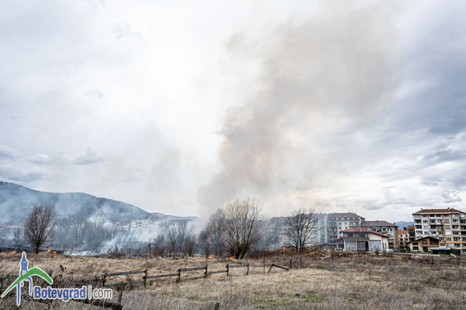 Пожарът е в земеделските терени, източно от квартал „Васил Левски” в Ботевград. Жилищния квартал буквално е обзаген, а, миризма се усеща и в центъра на града.
