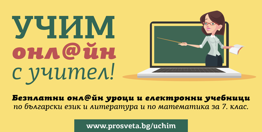 Уроците може да се гледат в сайта и във фейсбук страницата на издателството. Там учениците ще намерят и безплатни електронни учебници по български език и литература и по математика за 7. клас. Подробности за инициативата и график на видеоуроците ще научите тук:: http://www.prosveta.bg/uchim